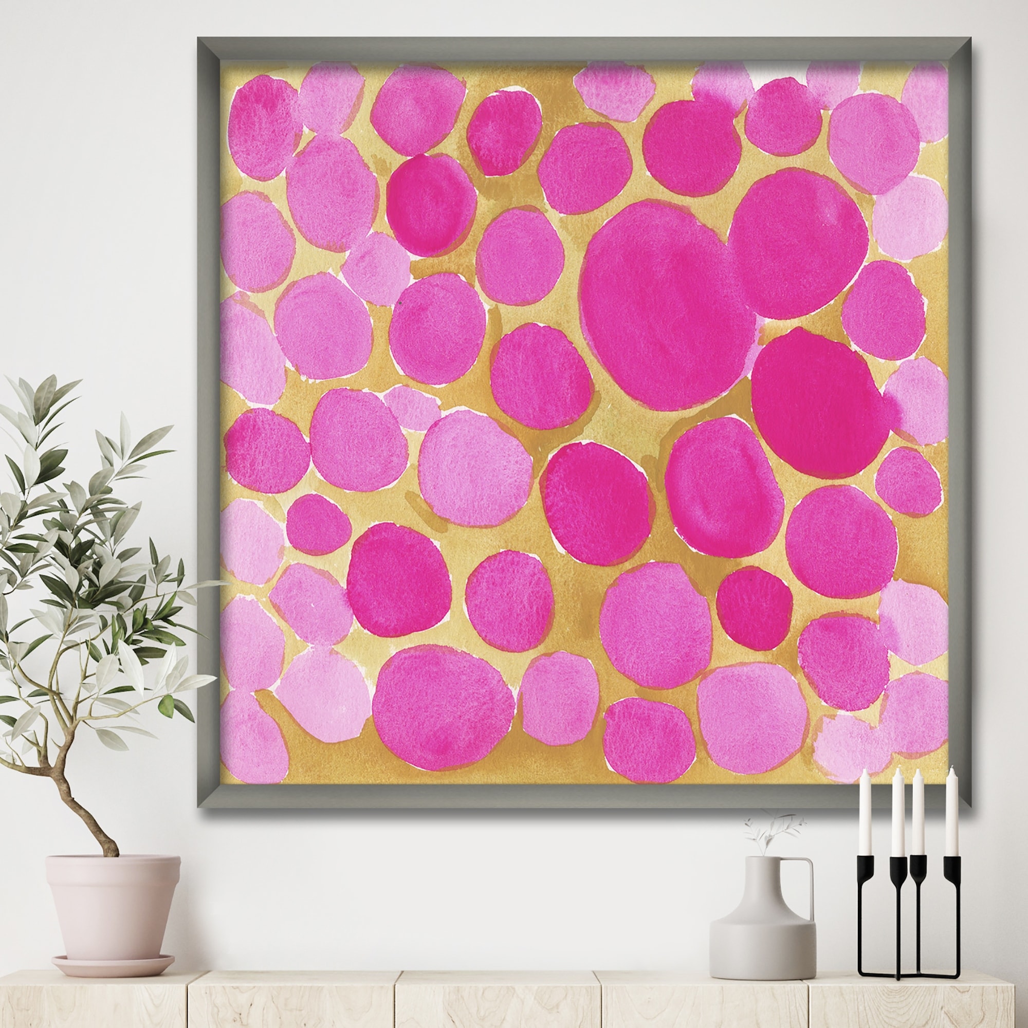 Designart "Pink Pebbles" Mid-Century Modern Framed Art Print
