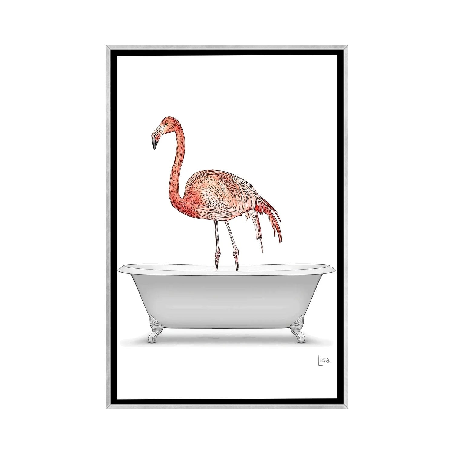 iCanvas "Color Flamingo in the Bath" by Printable Lisa's Pets Framed