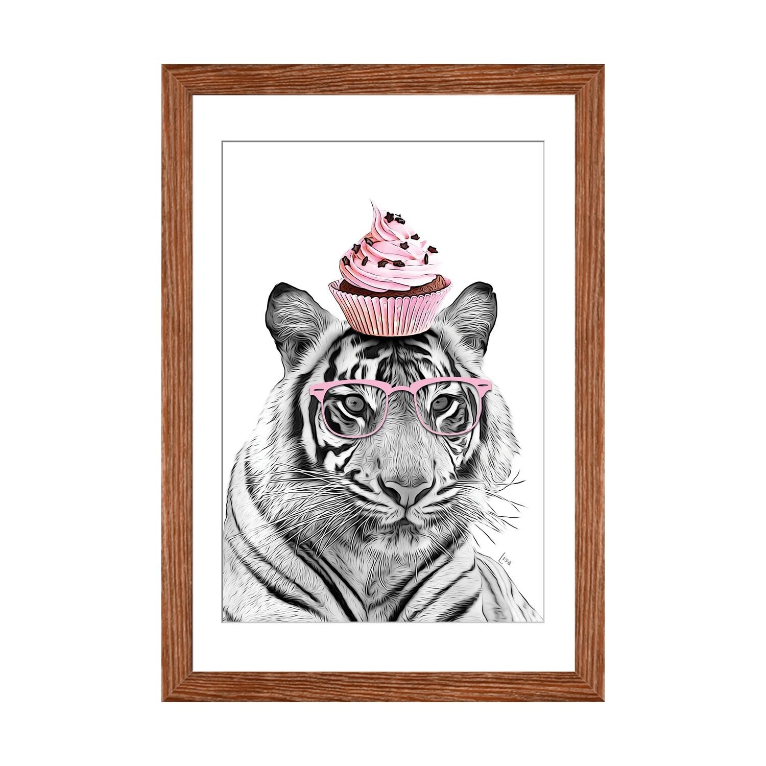 iCanvas "Tiger With Pink Glasses And Pink Cupcake" by Printable Lisa's Pets