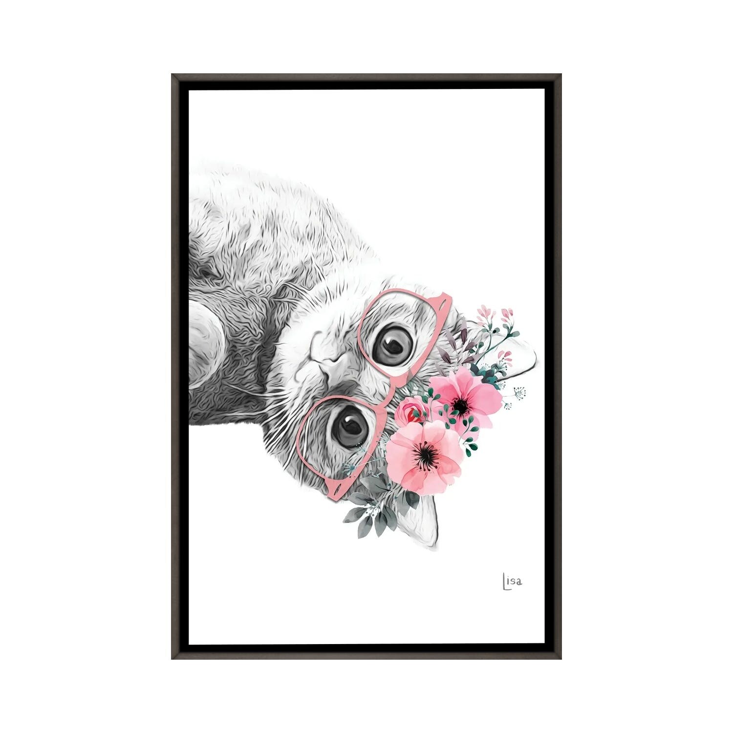 iCanvas "Cat With Glasses And Pink Flower Crown" by Printable Lisa's Pets Framed