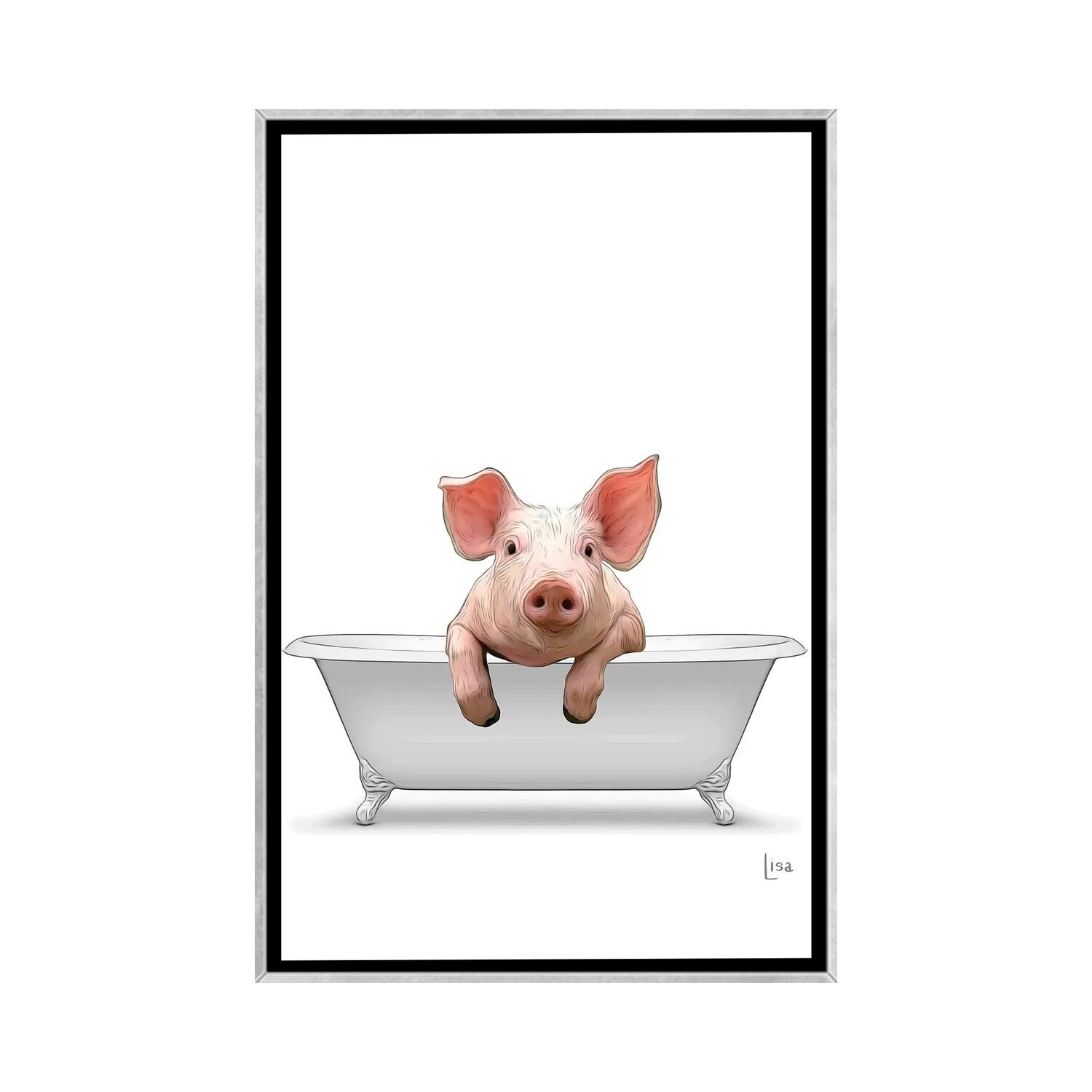 iCanvas "Color Pig in the Bath" by Printable Lisa's Pets Framed