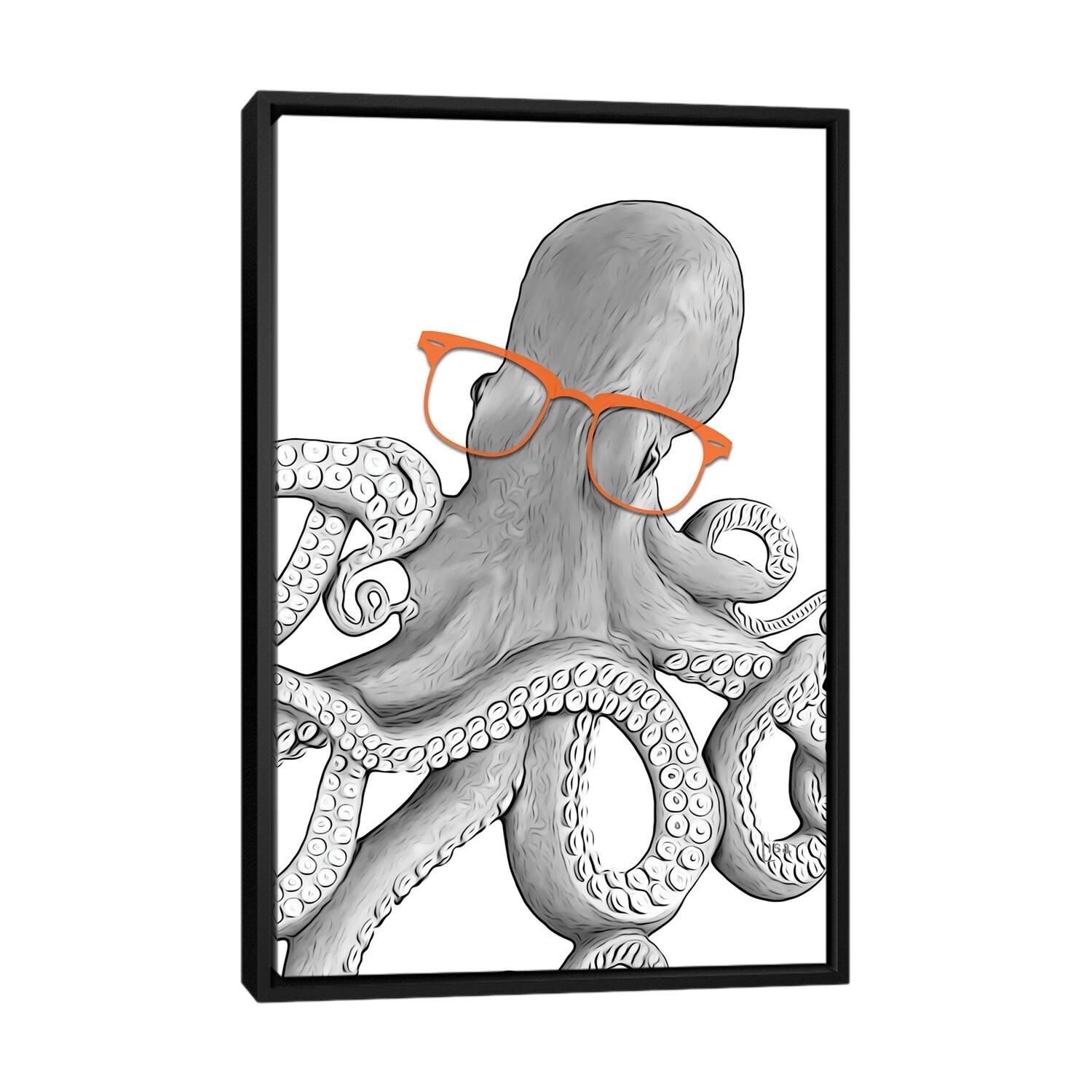 iCanvas "Octopus With Orange Glasses" by Printable Lisa's Pets Framed Canvas Print