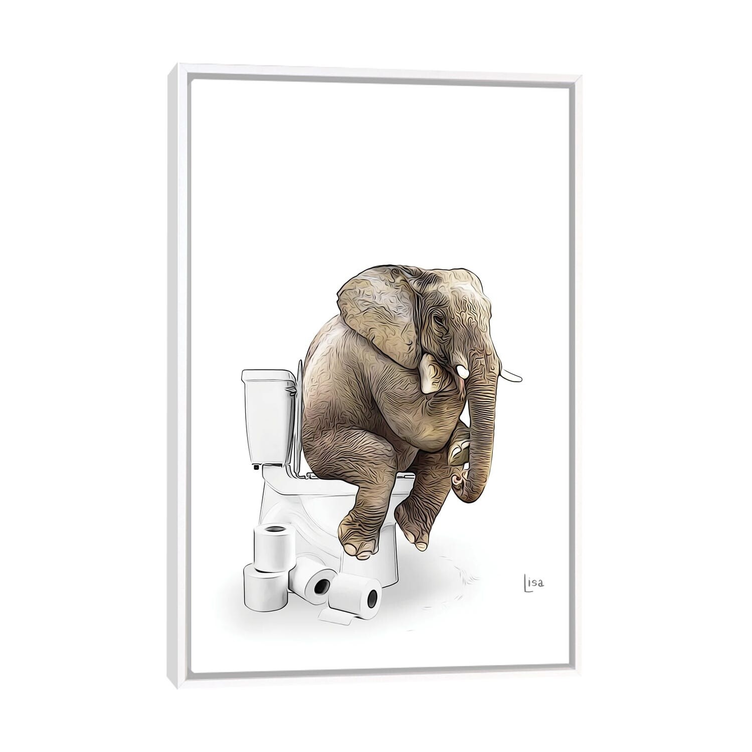 iCanvas "Color Elephant on the Toilet" by Printable Lisa's Pets Framed Canvas Print
