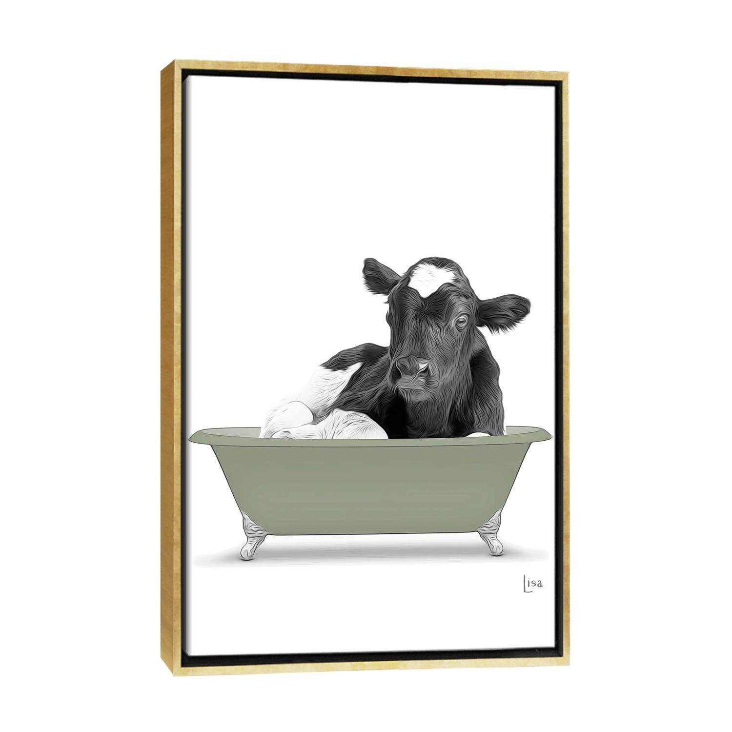 iCanvas "Cow In the Green Bath" by Printable Lisa's Pets Framed