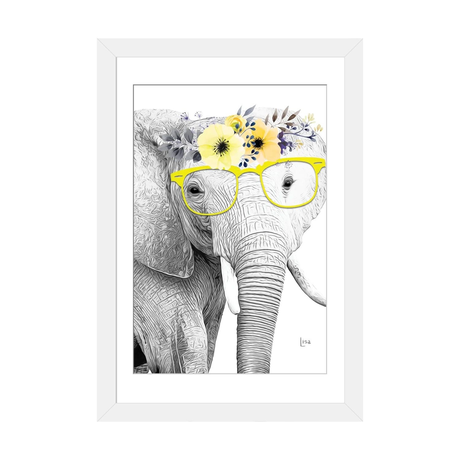 iCanvas "Elephant With Glasses And Yellow Flower Crown" by Printable Lisa's Pets