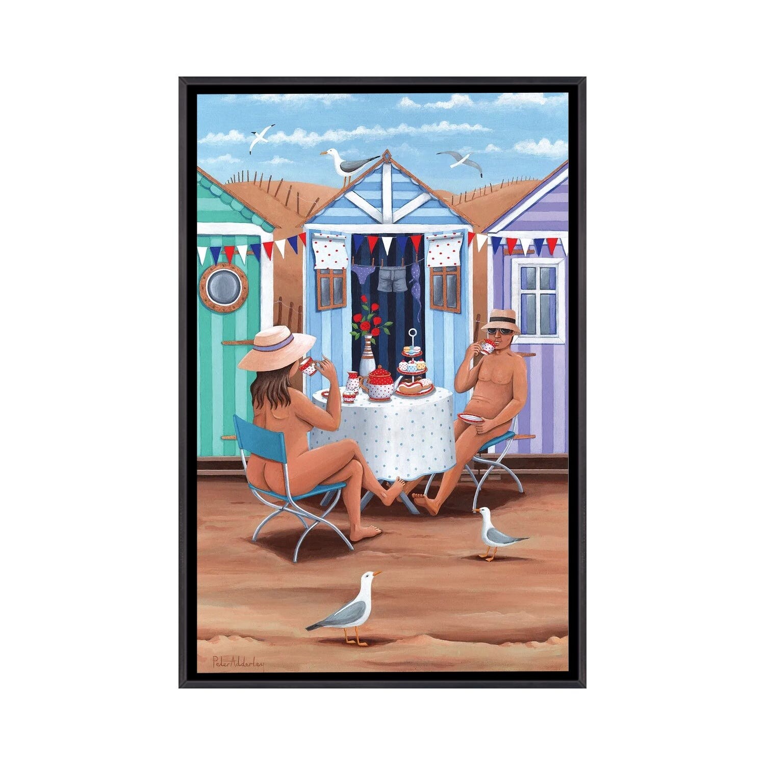 iCanvas "Beach Huts Afternoon Teas" by Peter Adderley Framed