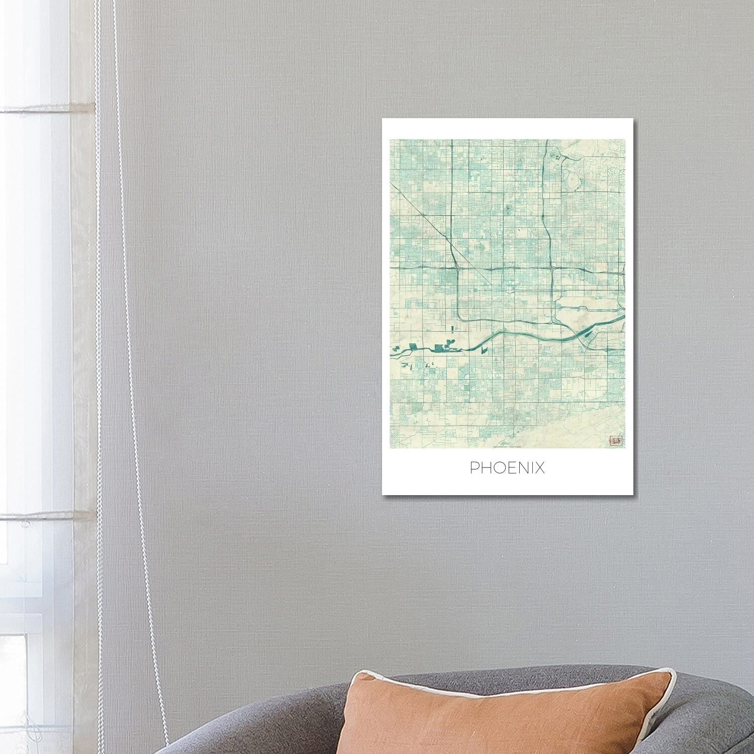 iCanvas "Phoenix Vintage Blue Watercolor Urban Blueprint Map" by Hubert Roguski Canvas Print