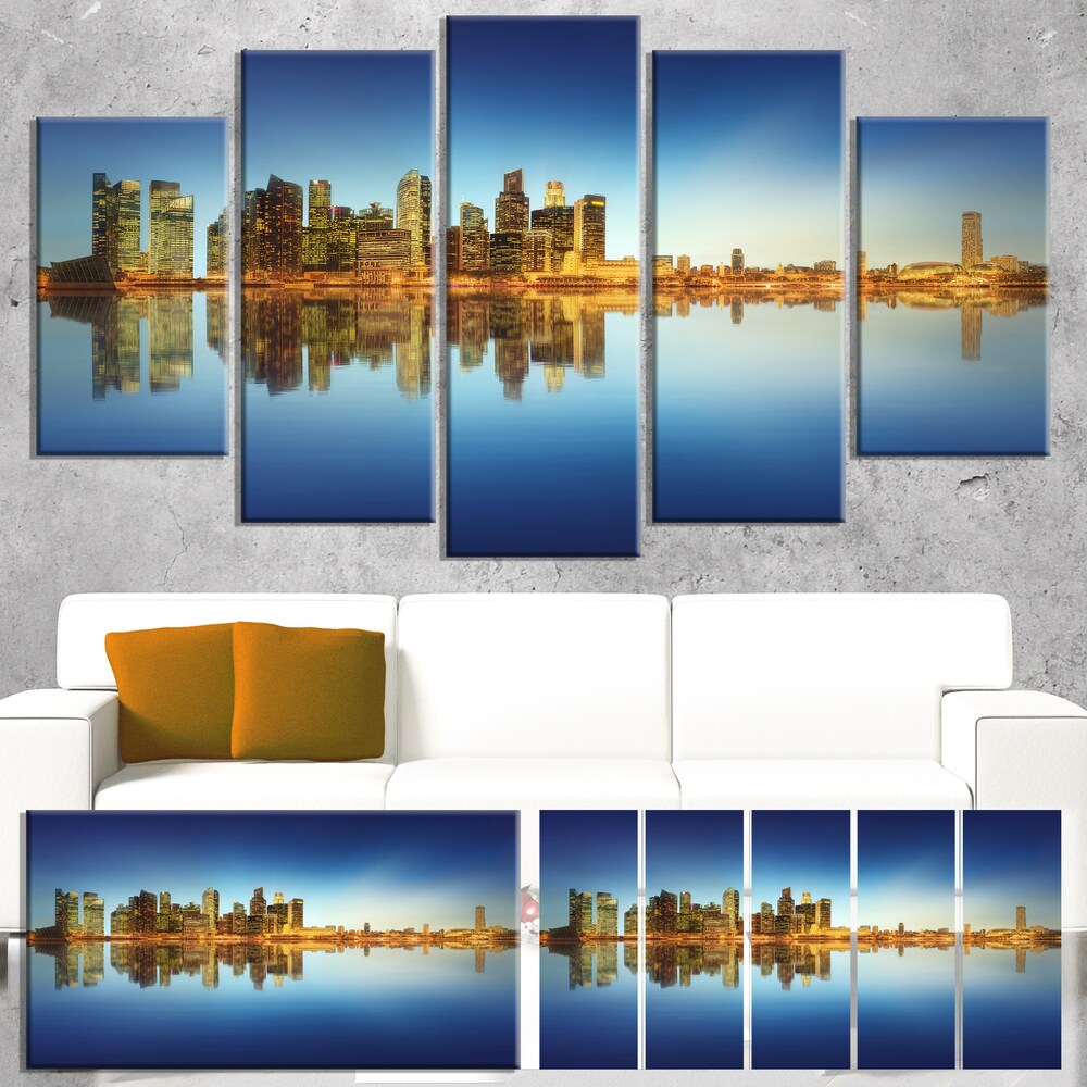 Calm Singapore Skyline - Cityscape Photography Canvas Print - Blue