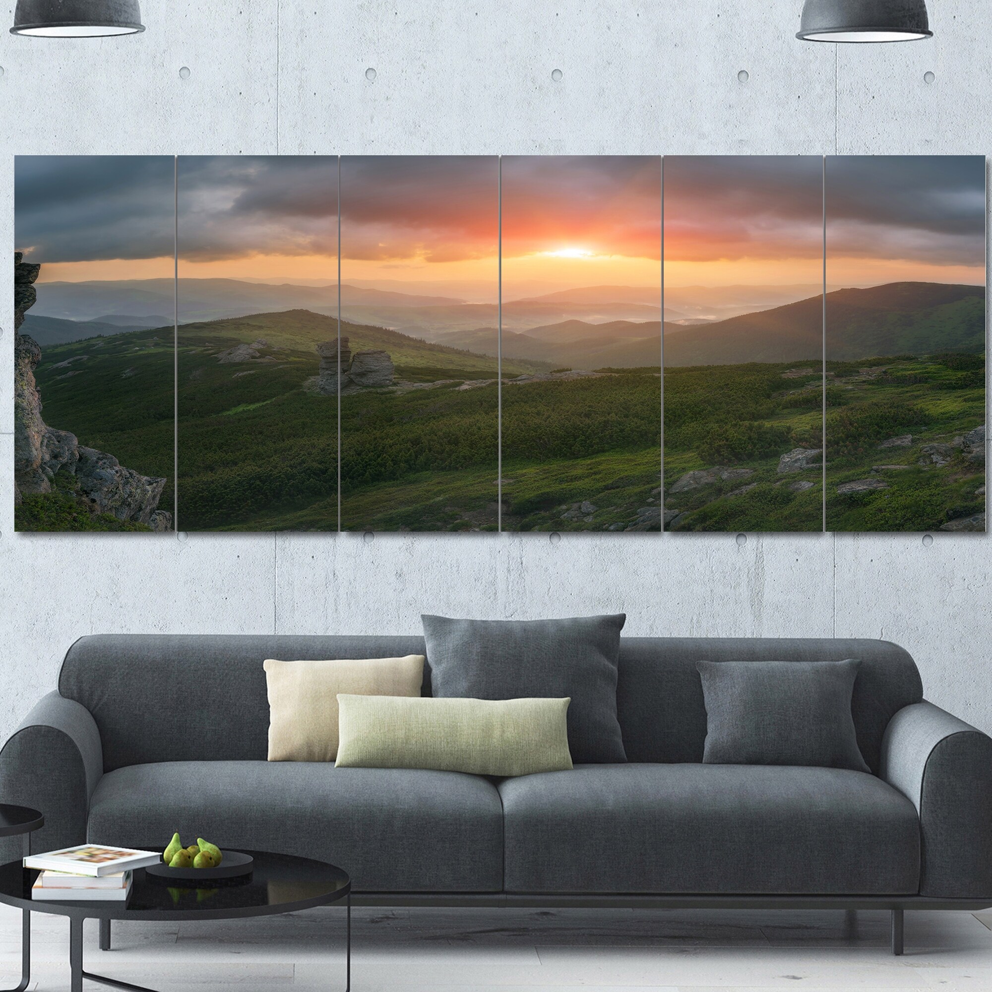 Designart "Panorama of sunrise in the mountain" Landscapes photography on Wrapped Canvas set