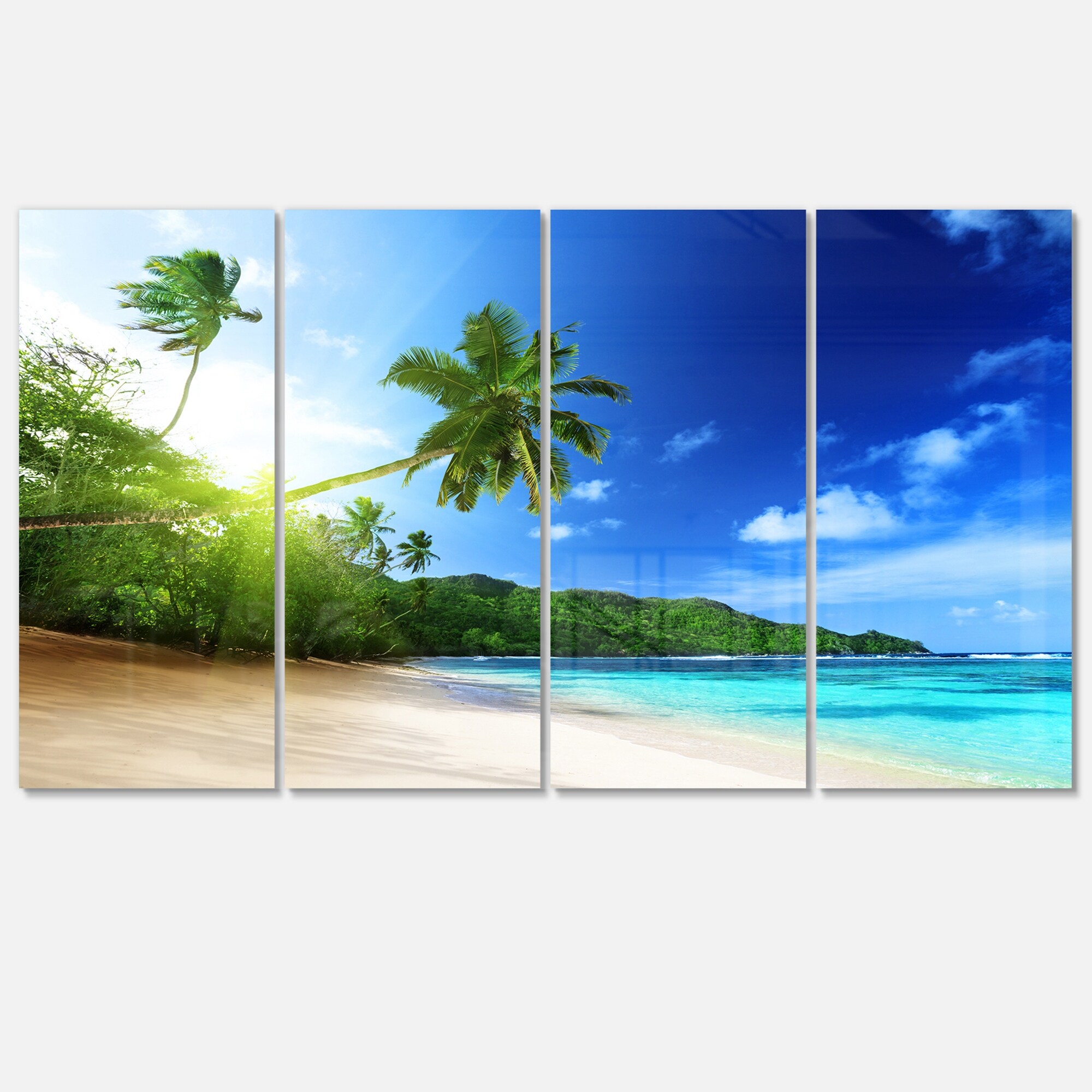 Designart 'Sunset Beach with Palm' Landscape Photography Metal Wall Art