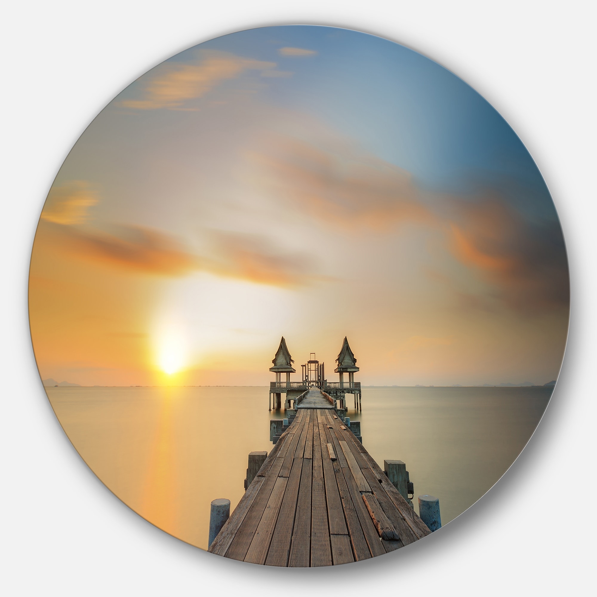Designart 'Infinity Bridge' Seascape Photography Aluminum Circle Wall Art