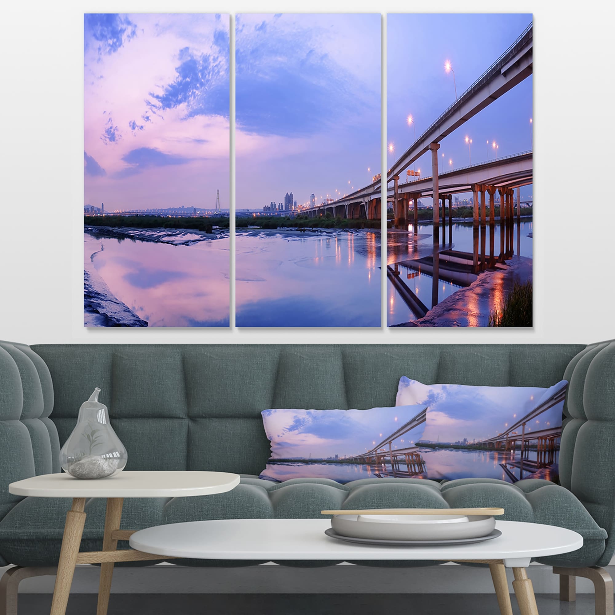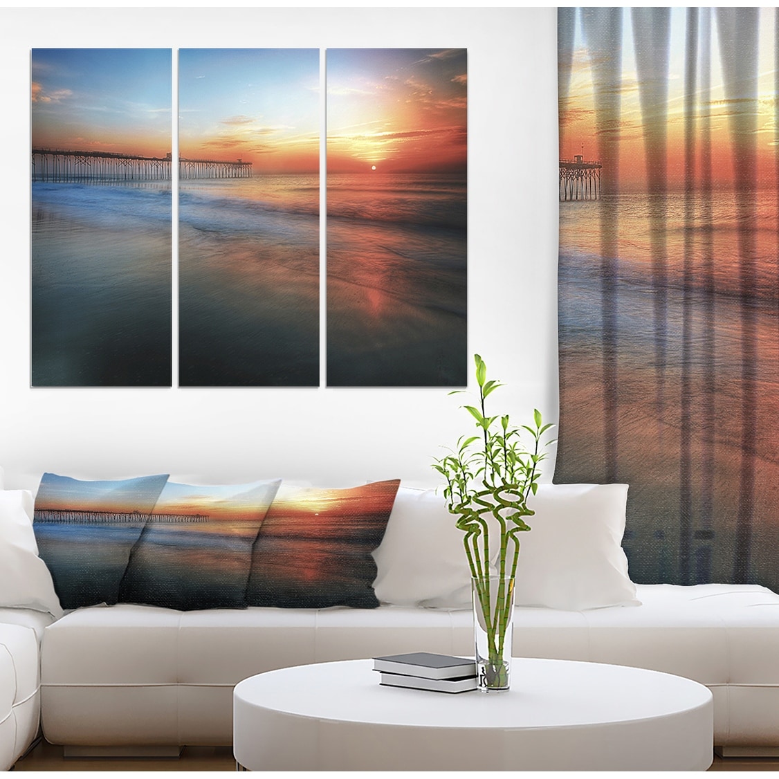 Designart "Sunrise by the pier" Sea & Shore Photography on Wrapped Canvas set