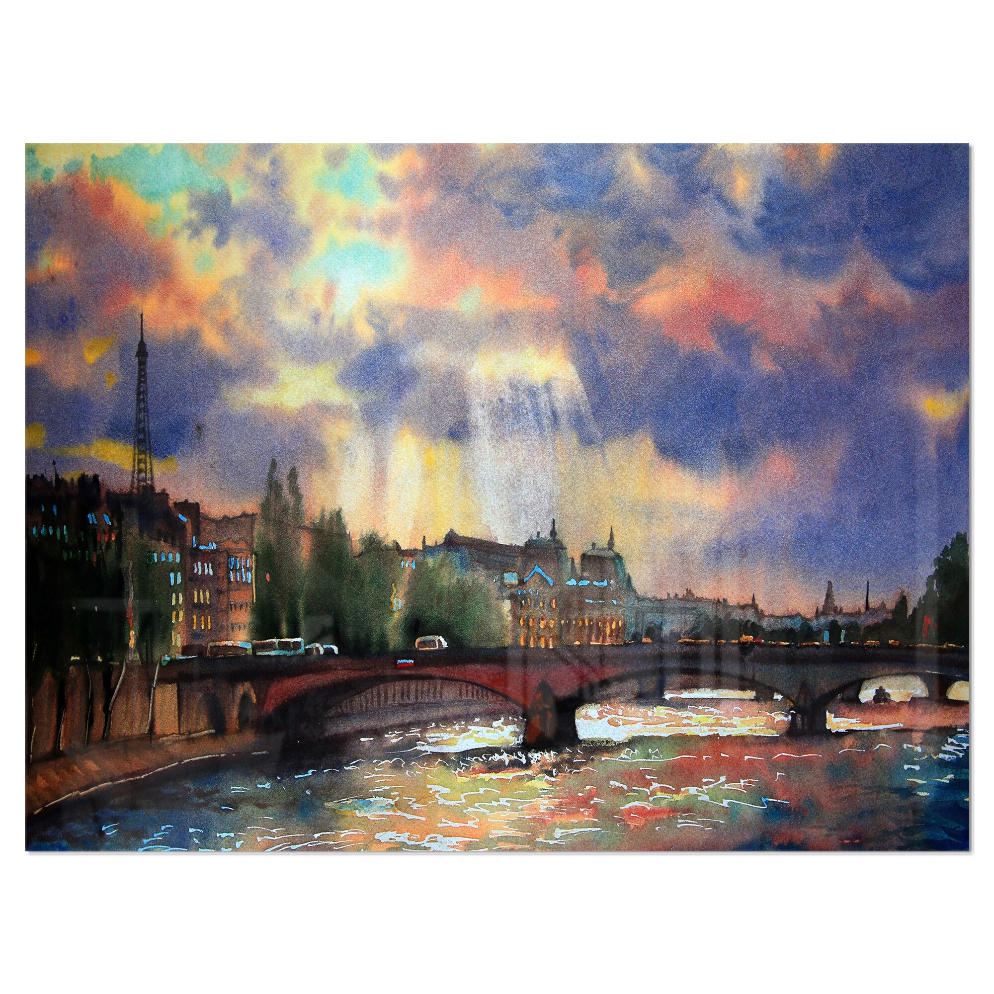 Fabulous Paris City Watercolor - Large Photography Glossy Metal Wall Art