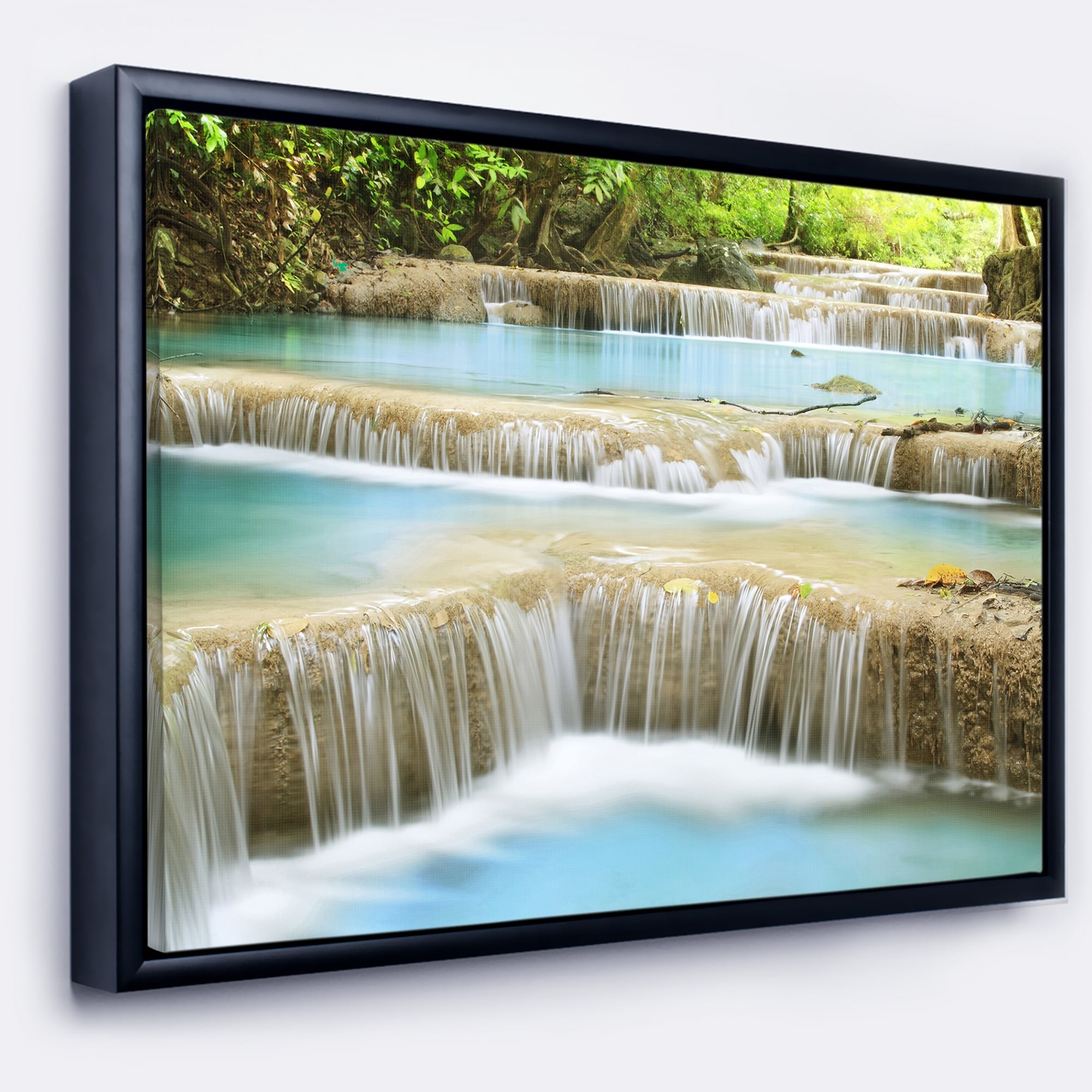 Designart "Erawan Waterfall" Landscape Photography Framed Canvas Art Print