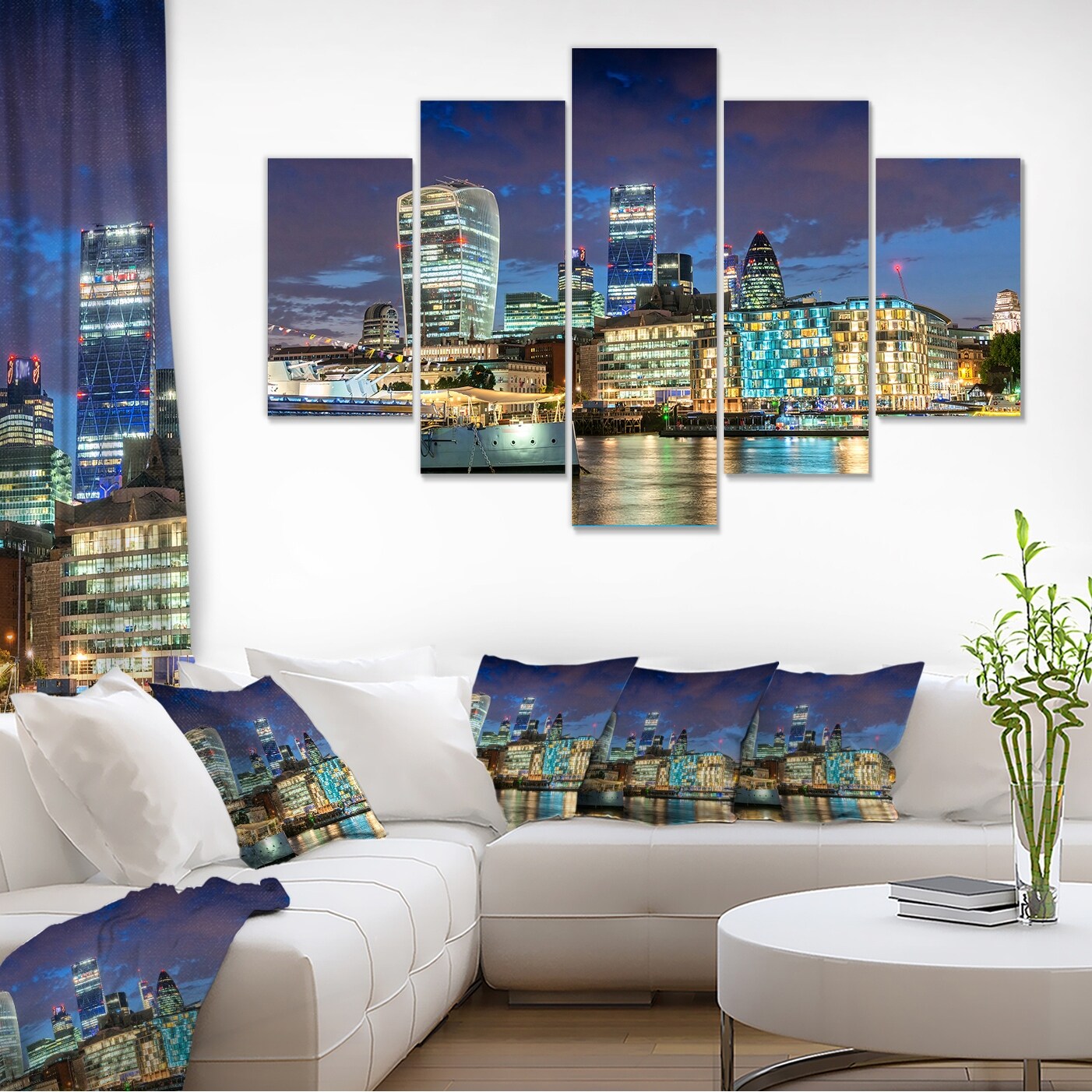 Designart "Thames River at Night" Cityscape Photography Canvas Print