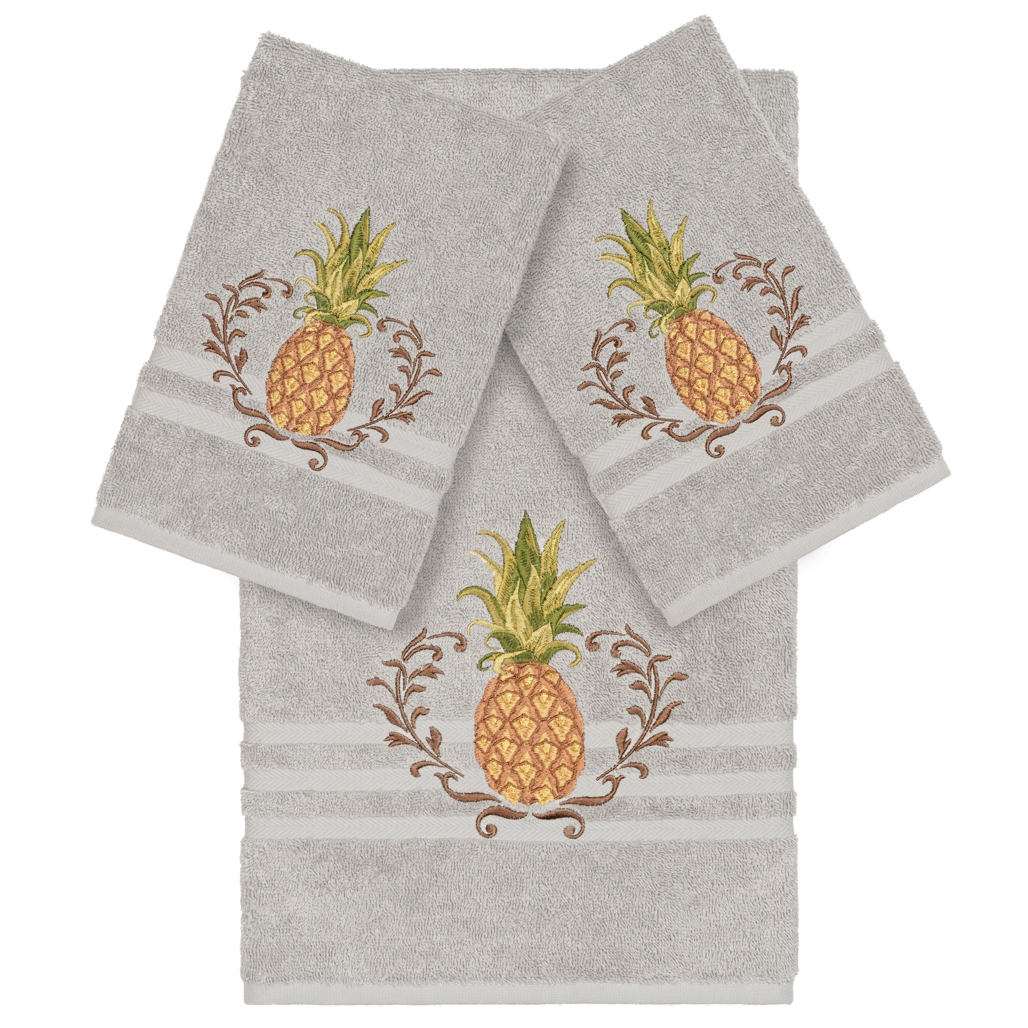 Authentic Hotel and Spa Turkish Cotton Pineapple Embroidered Light Grey 3-piece Towel Set