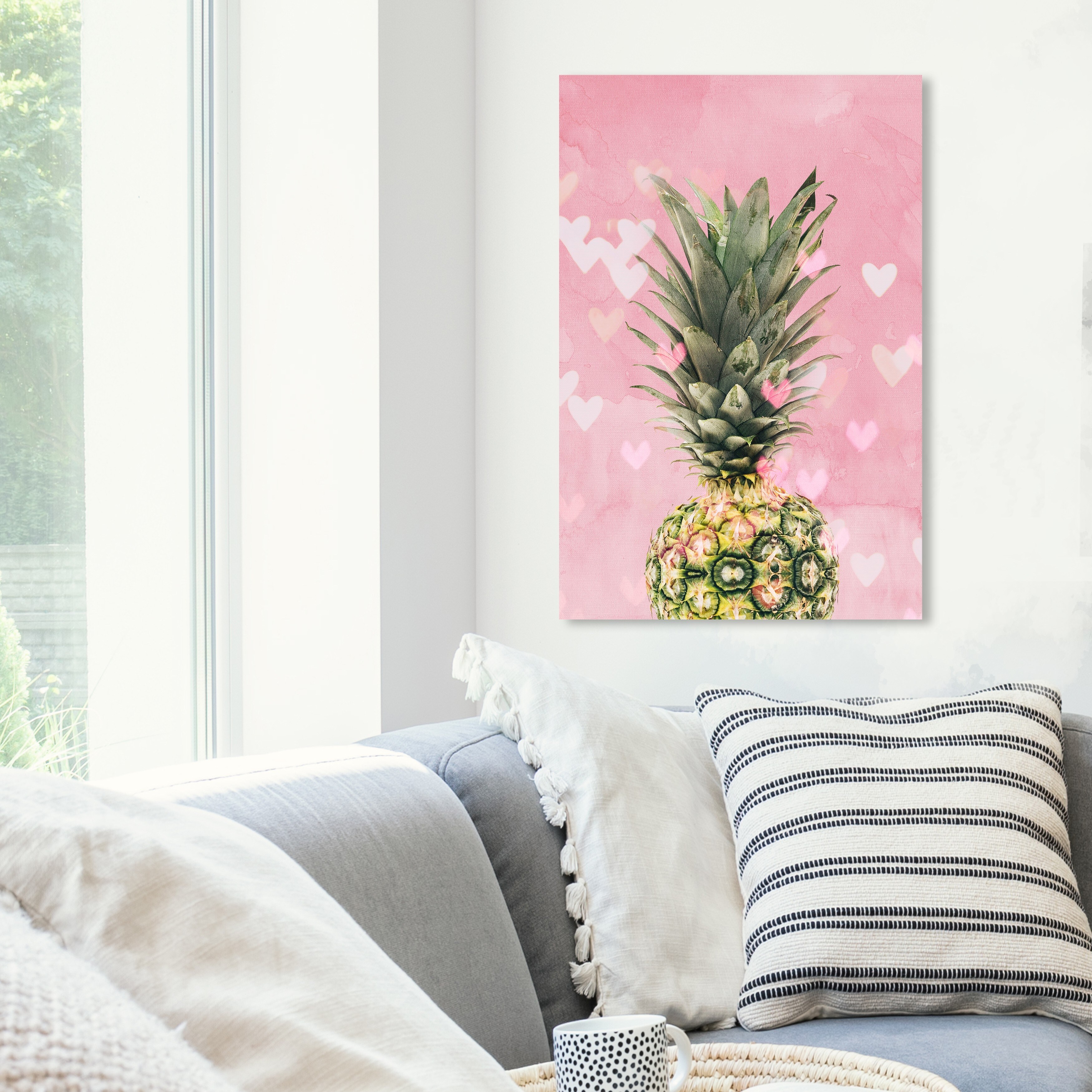 Wynwood Studio 'Pink Pineapple Hearts' Fashion and Glam Wall Art Canvas Print Hearts - Pink, Green