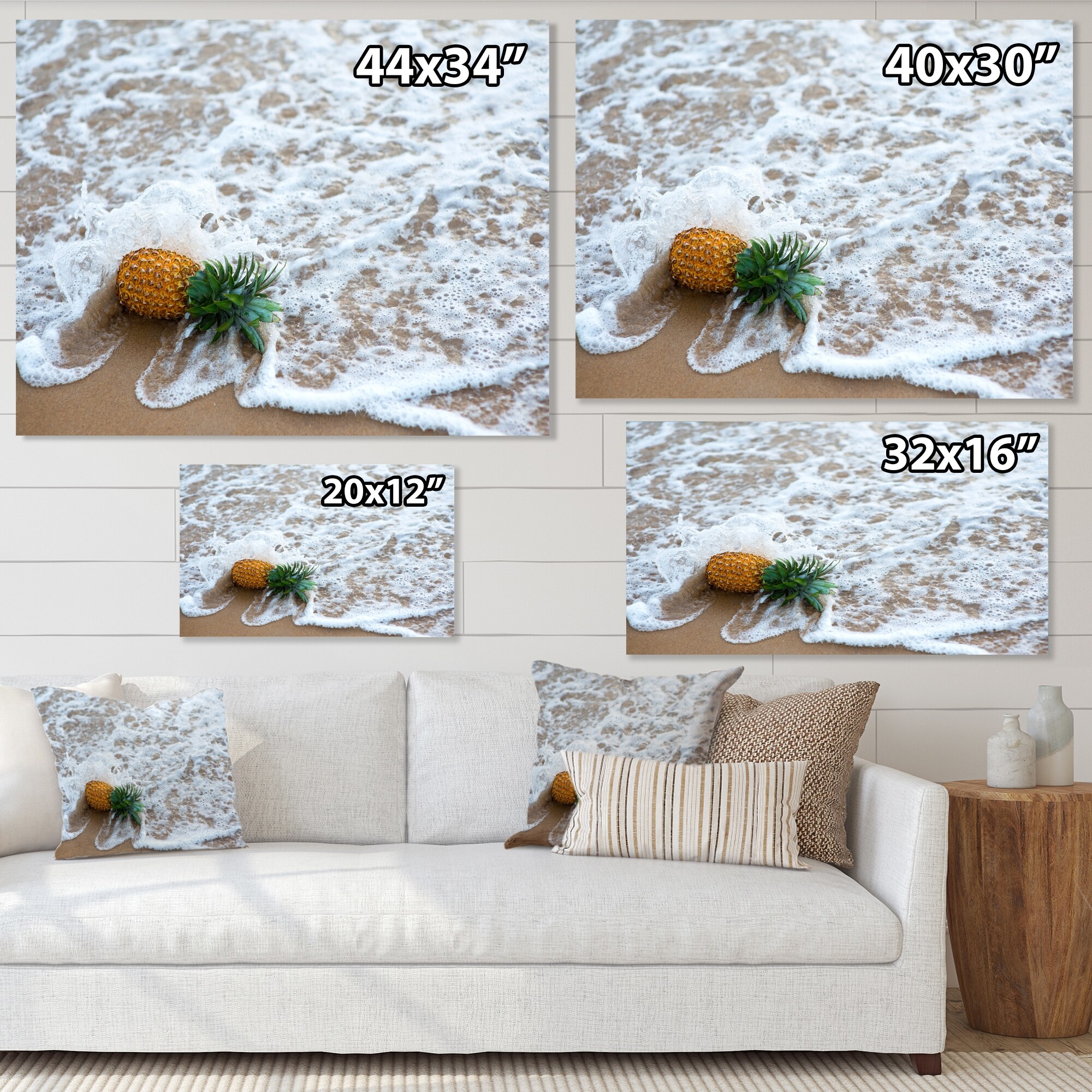 Designart "Pineapple Fallen By Ocean Wave" Nautical & Coastal Canvas Wall Art Print