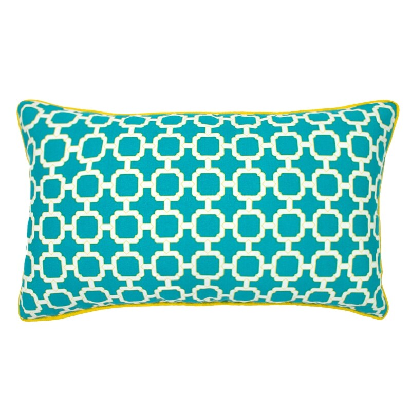 Entryways Embroidered Curves Outdoor Pillow, Aqua, 12" x 20" with piping
