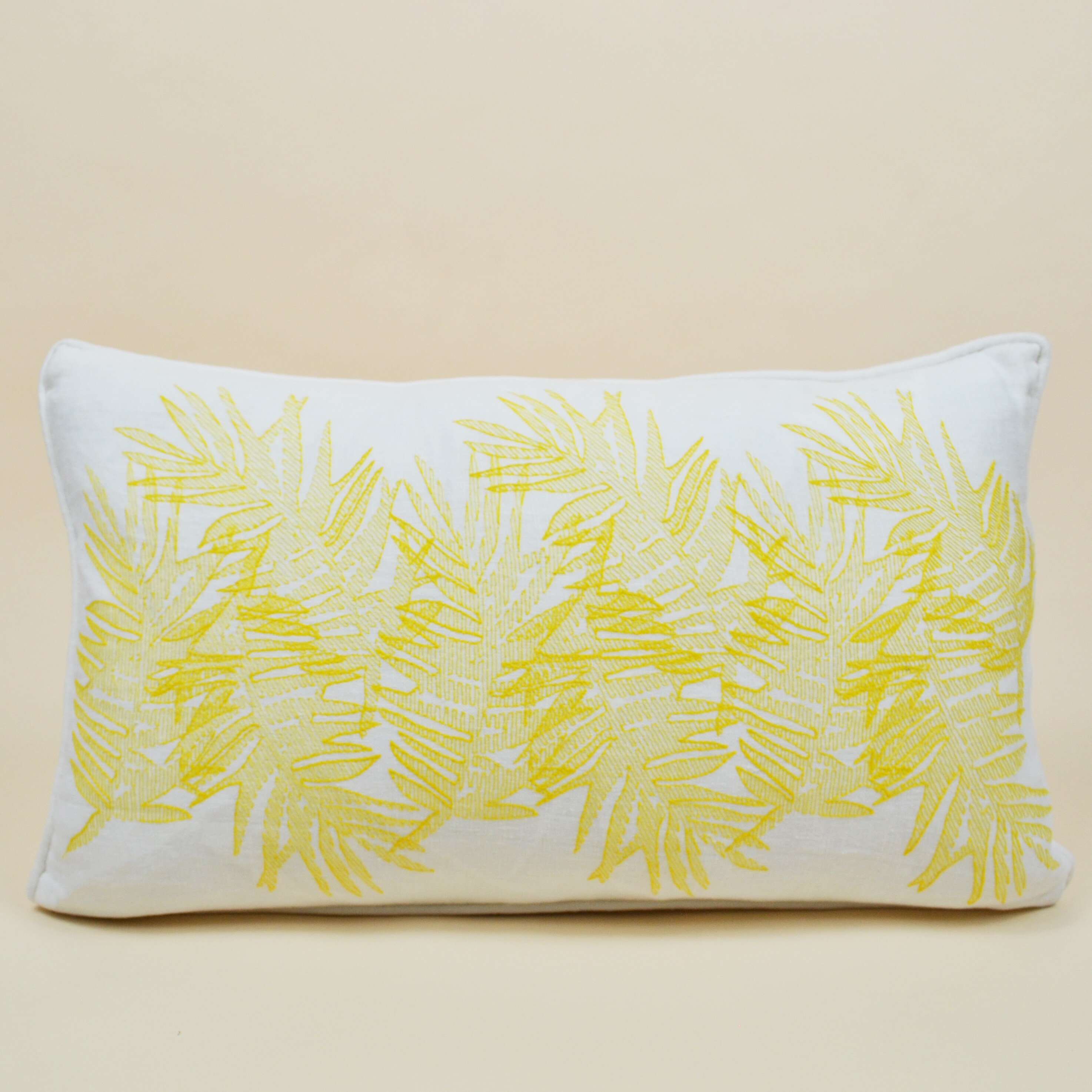Jiti Indoor Casual Coastal Multi Palm Design Embroidered Italian Linen Piped Edges Decorative Rectangle Lumbar Pillows 12 x 20