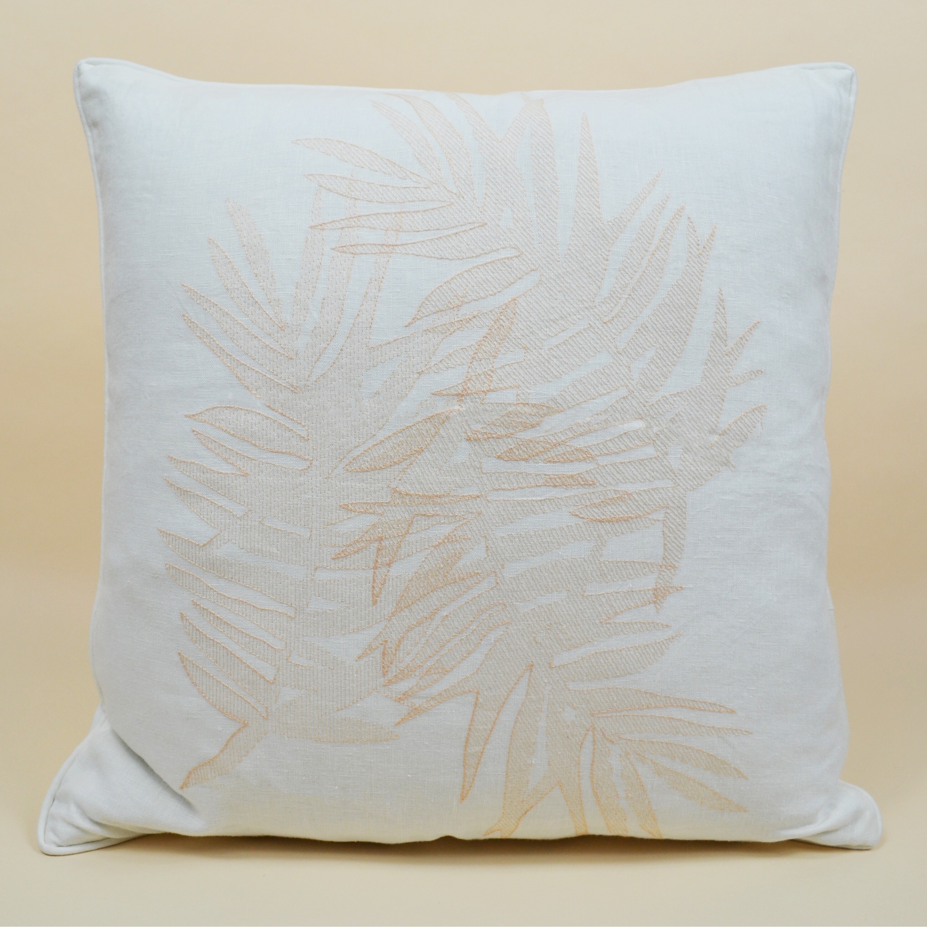 Jiti Indoor Casual Coastal Multi Palm Design Embroidered Soft Italian Linen Piped Edges Decorative Accent Square Throw Pillows