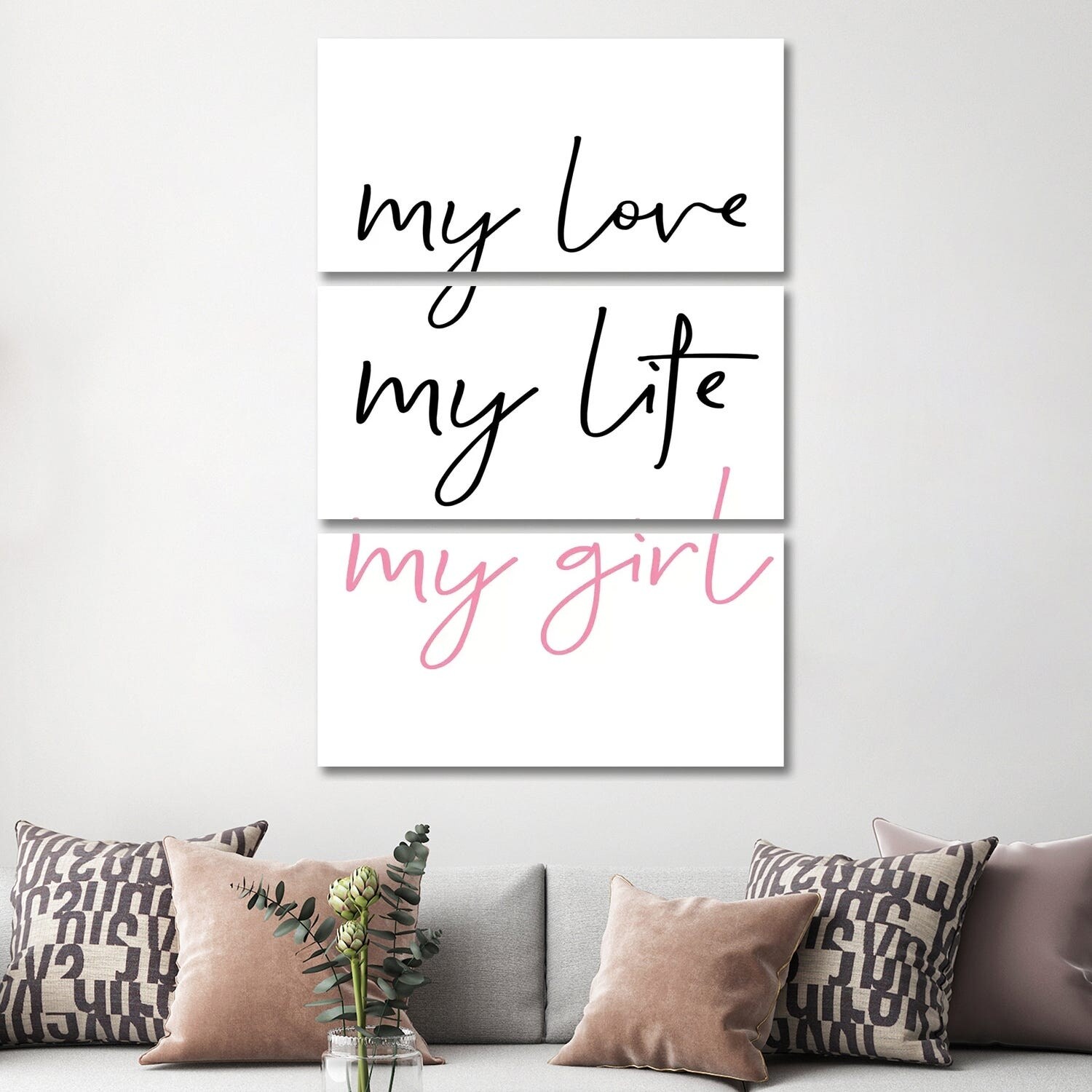 iCanvas "My Love My Girl Black And Pink Redesigned" by Pixy Paper 3-Piece Canvas Wall Art Set