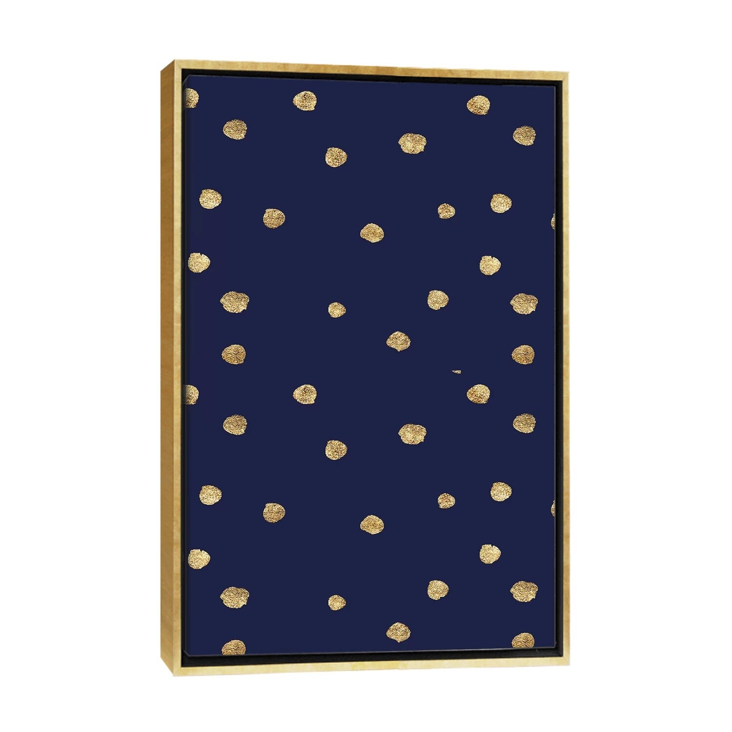 iCanvas "Gold Polka Dots With Royal Blue Background" by Pixy Paper Framed