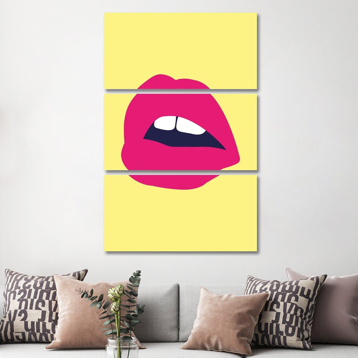 iCanvas "Pink Lips Yellow Back" by Pixy Paper 3-Piece Canvas Wall Art Set
