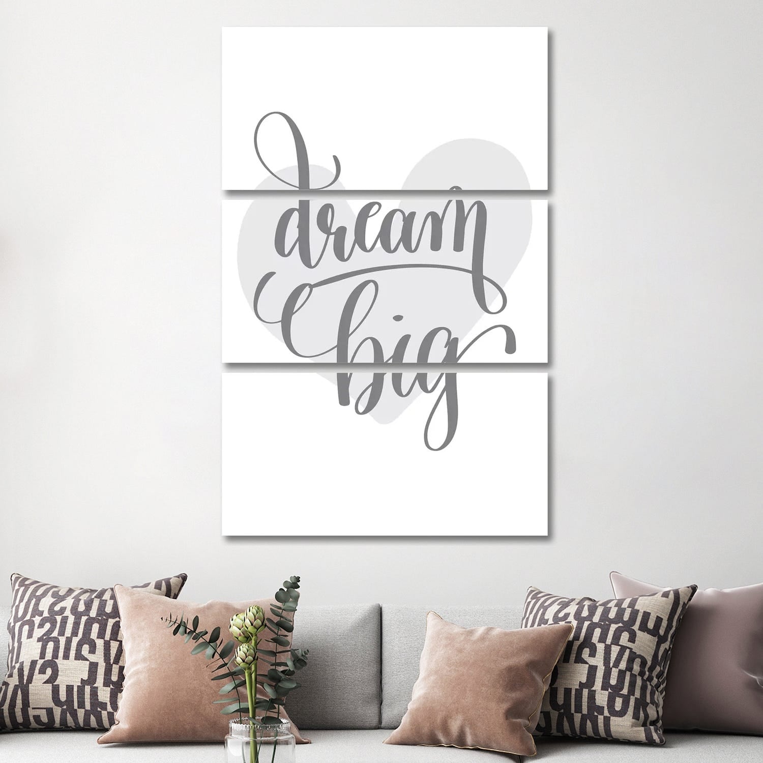 iCanvas "Dream Big Grey Heart" by Pixy Paper 3-Piece Canvas Wall Art Set