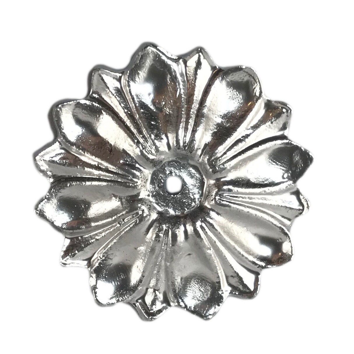 Antique Solid Metal Flower Shaped Knob Back Plate, Chrome - Pack of 6