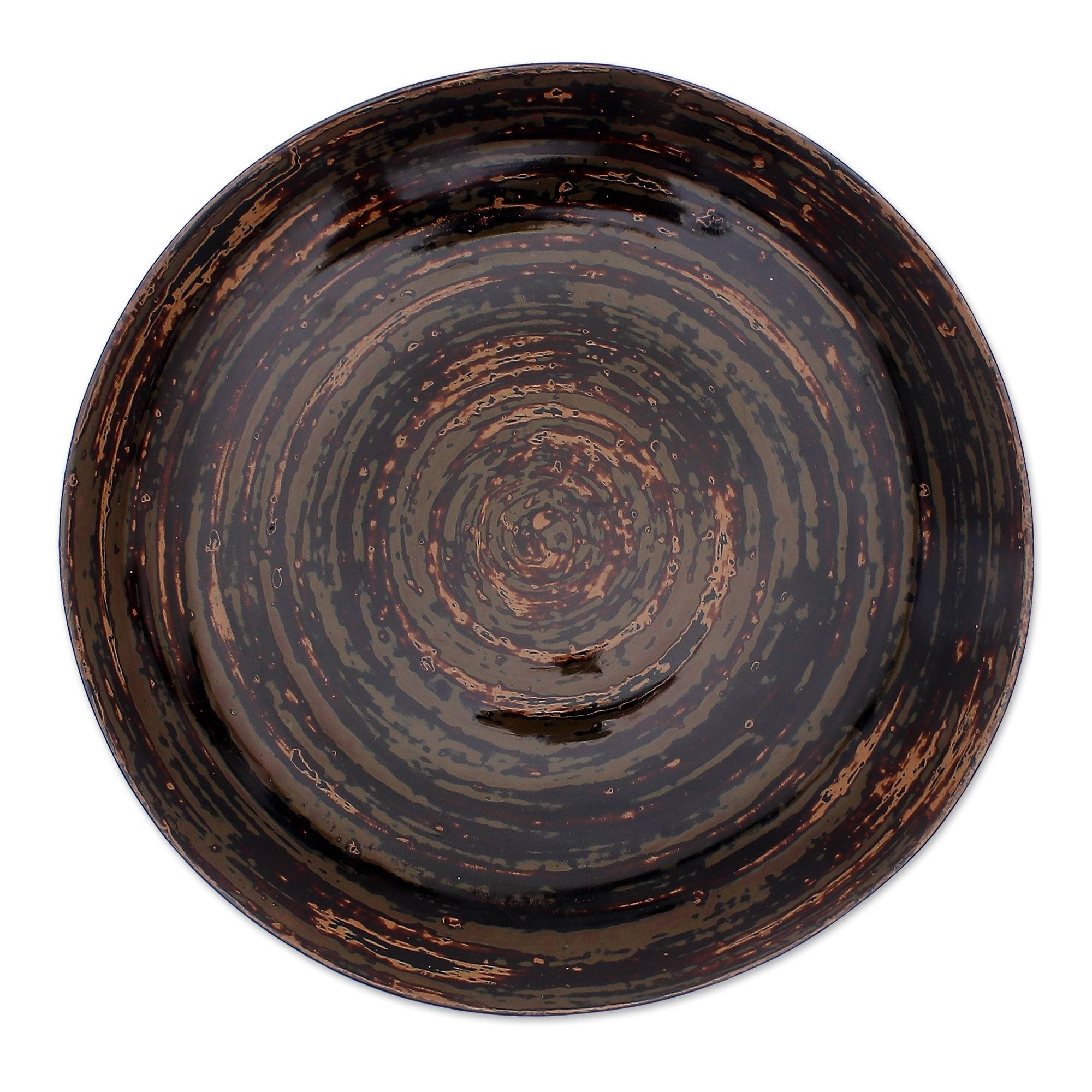 Novica Handmade Forest Whirl Lacquered Bamboo Decorative Plate