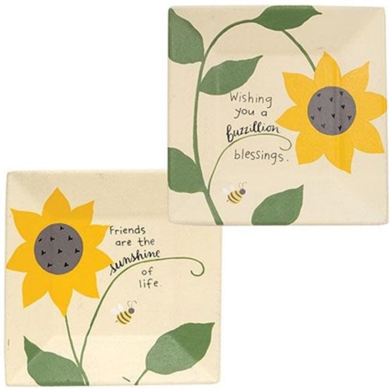 Buzzillion Blessings Square Plate 2 Asstd. - H - 8.25 in. W - 0.75 in. L - 8.25 in.