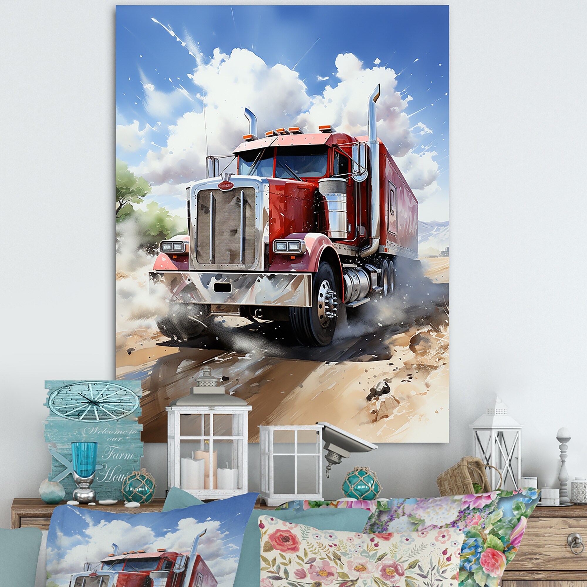 Designart "Red Semi Truck Pride I" Truck Wall Art Living Room