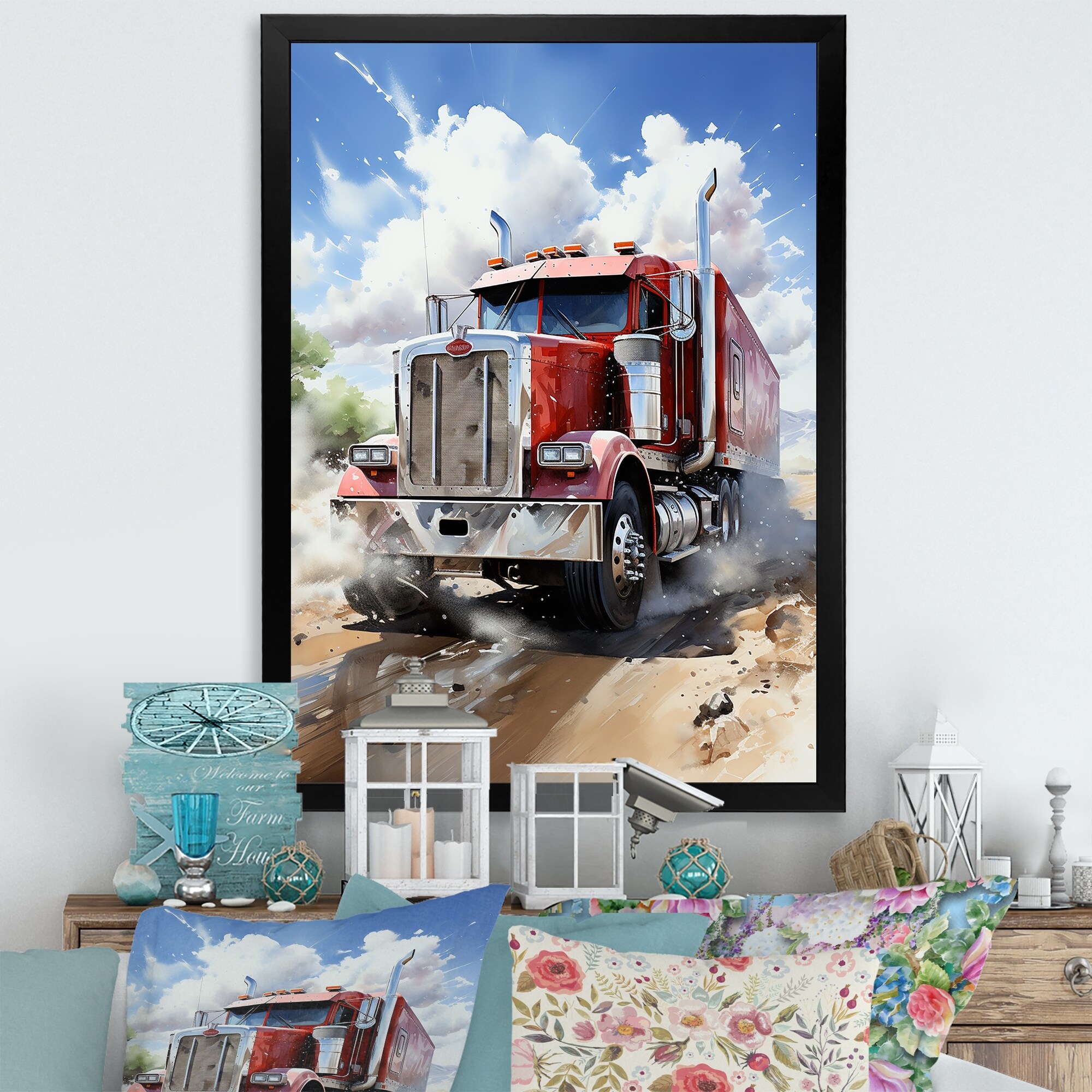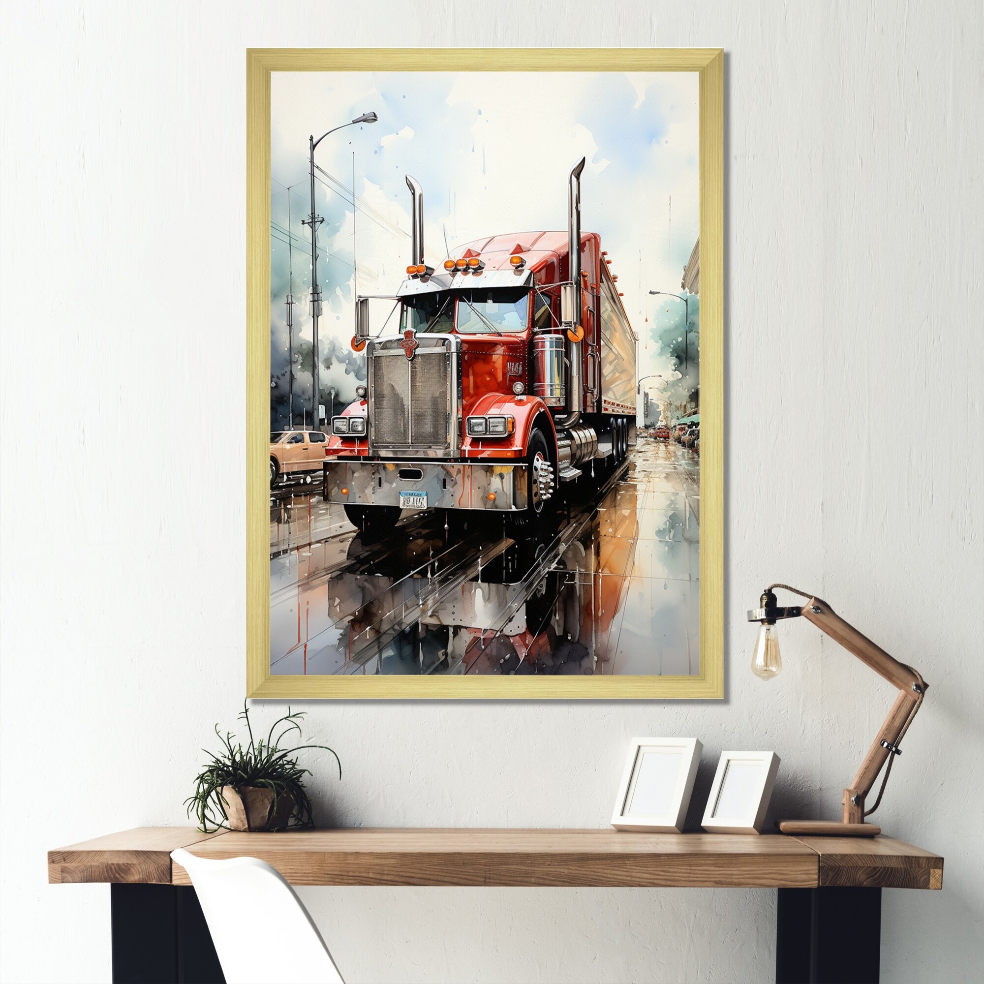 Designart "Red Semi Truck Pride I" Truck Framed Wall Decor