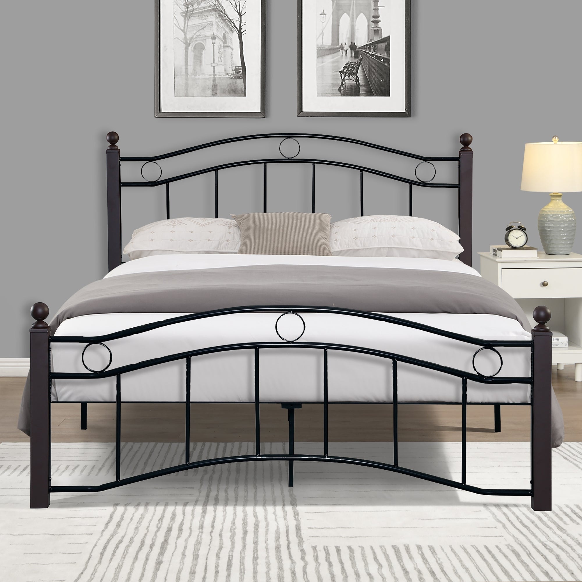 Queen Size Metal Bed Frame with Headboard and Footboard