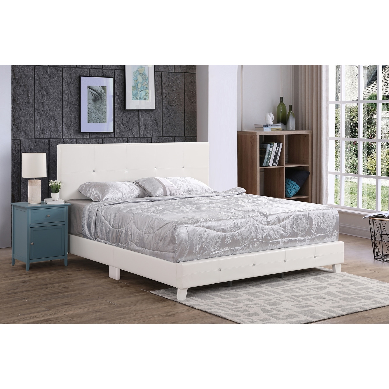 Queen Size Leather Upholstered Bed White