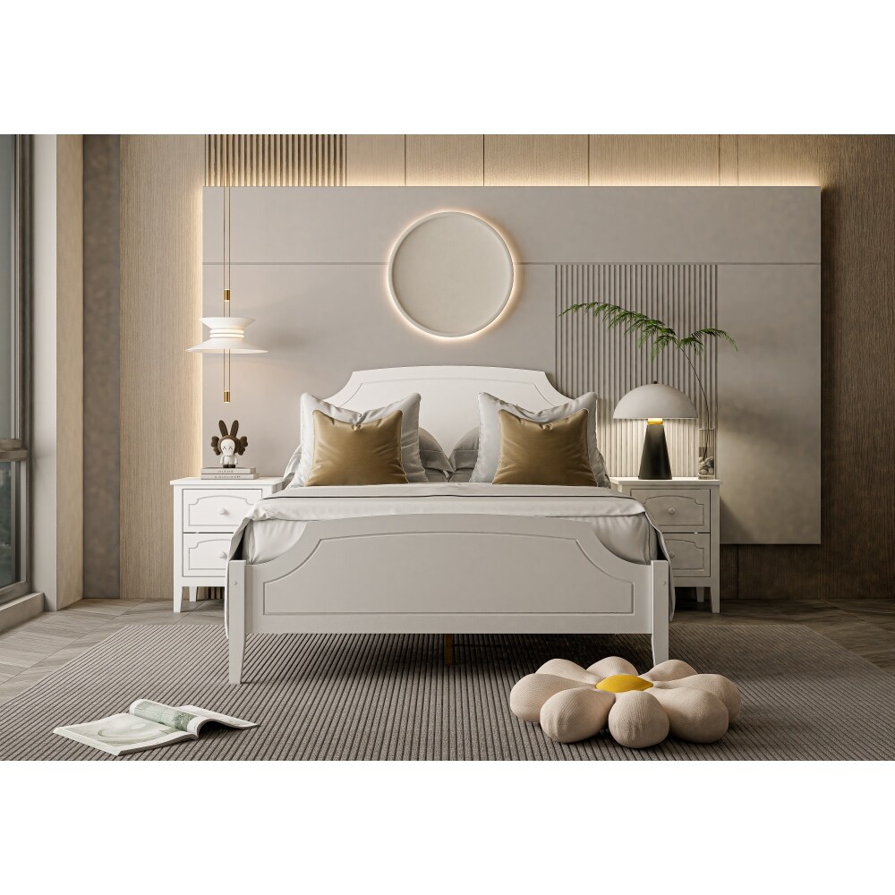 White Contemporary Roman Style Platform Bed, Queen or Full Size Bed Frame with Headboard and Footboard