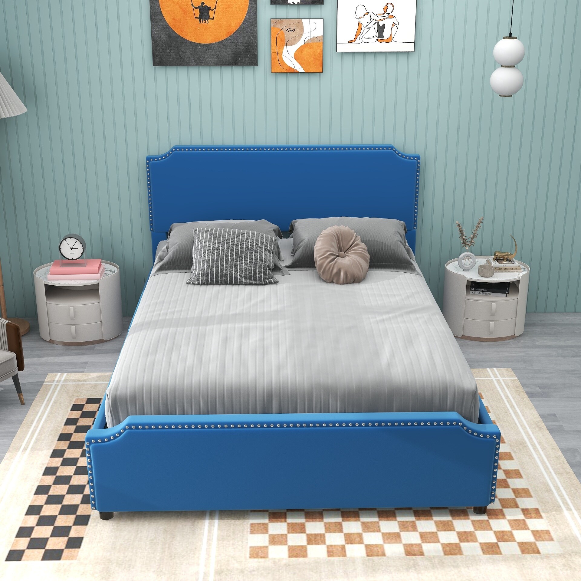 Queen Size Velvet Upholstered Platform Bed with Upholstered Headboard