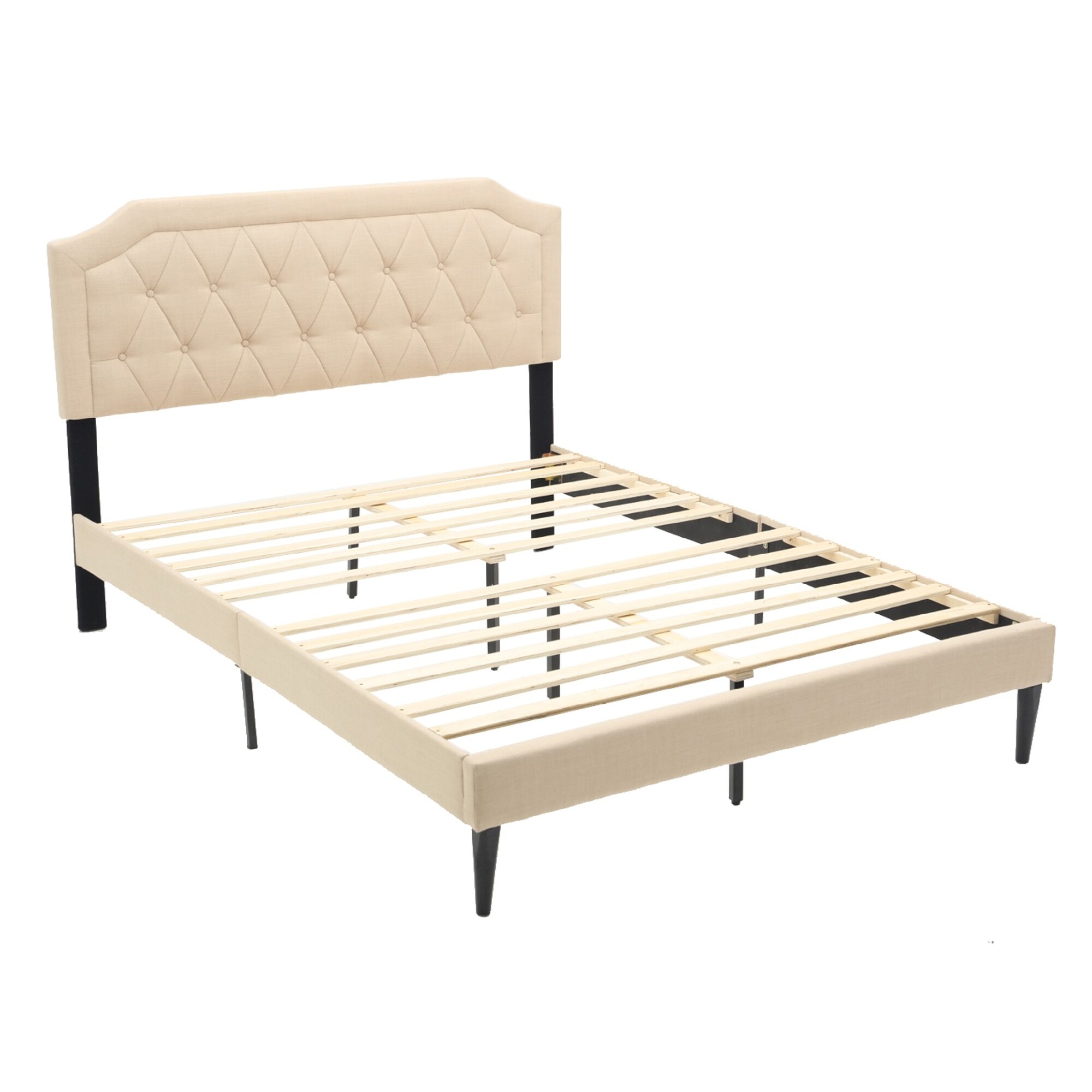 Queen Size Linen Upholstered Platform Bed with Tufted Headboard