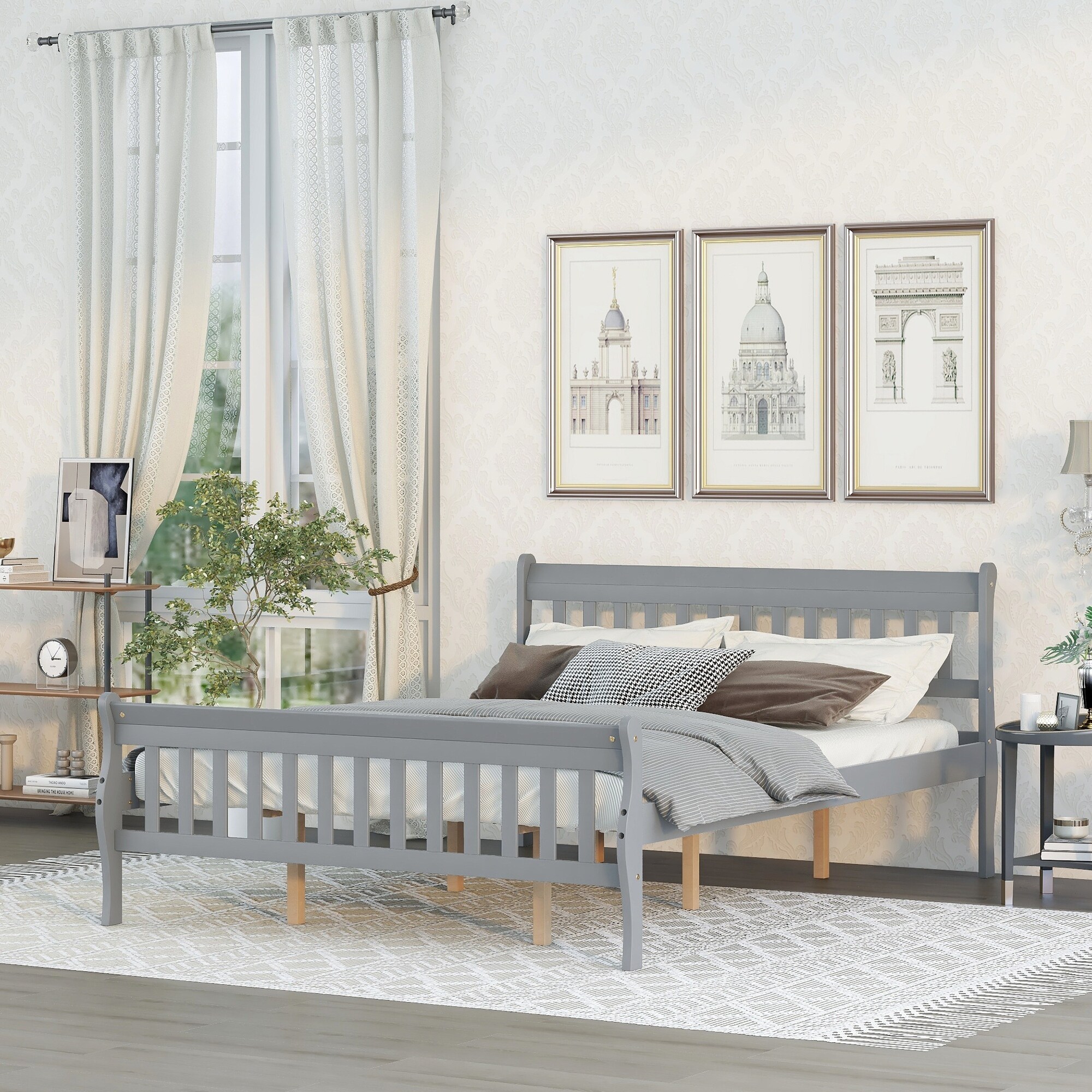 Queen Size Wood Platform Bed with Headboard and Footboard