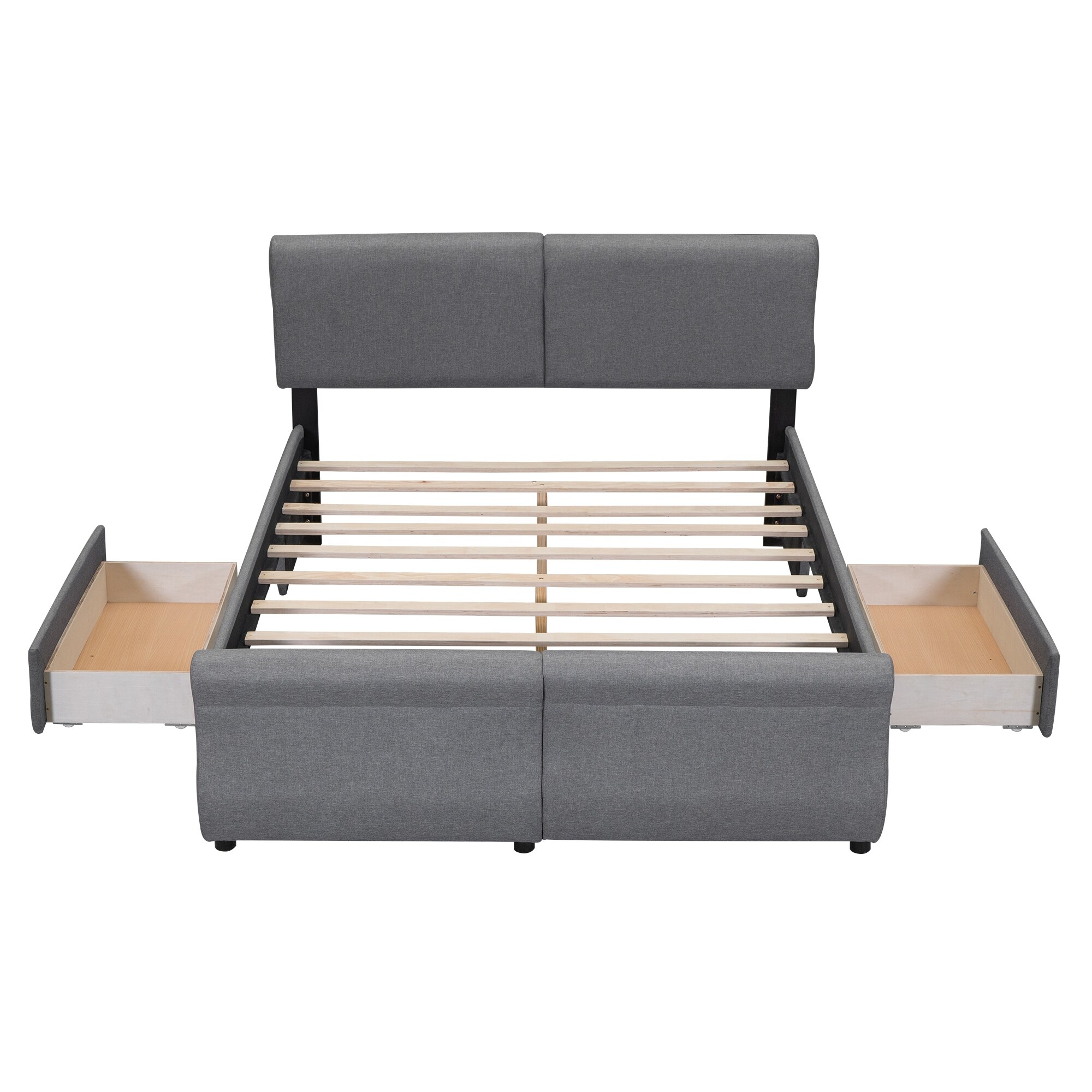 Queen Size Upholstered Platform Bed with 4 Storage Drawers, Linen Wingback Headboard and Wood Slats