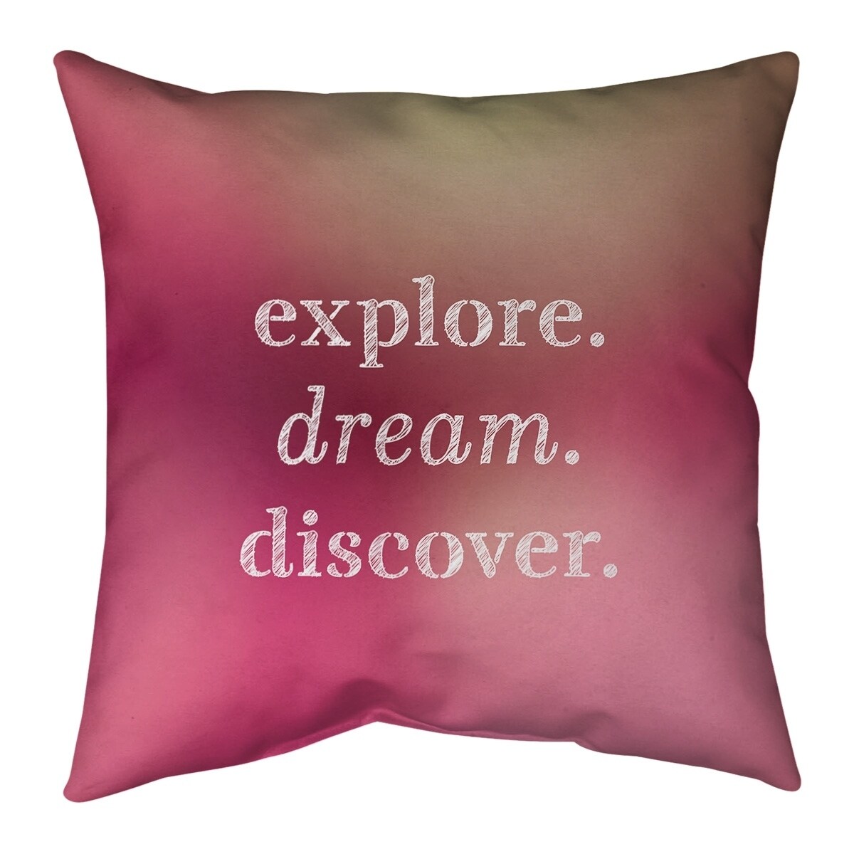 Quotes Multicolor Background Explore Dream Discover Quote Pillow (w/Rmv Insert)-Spun Poly