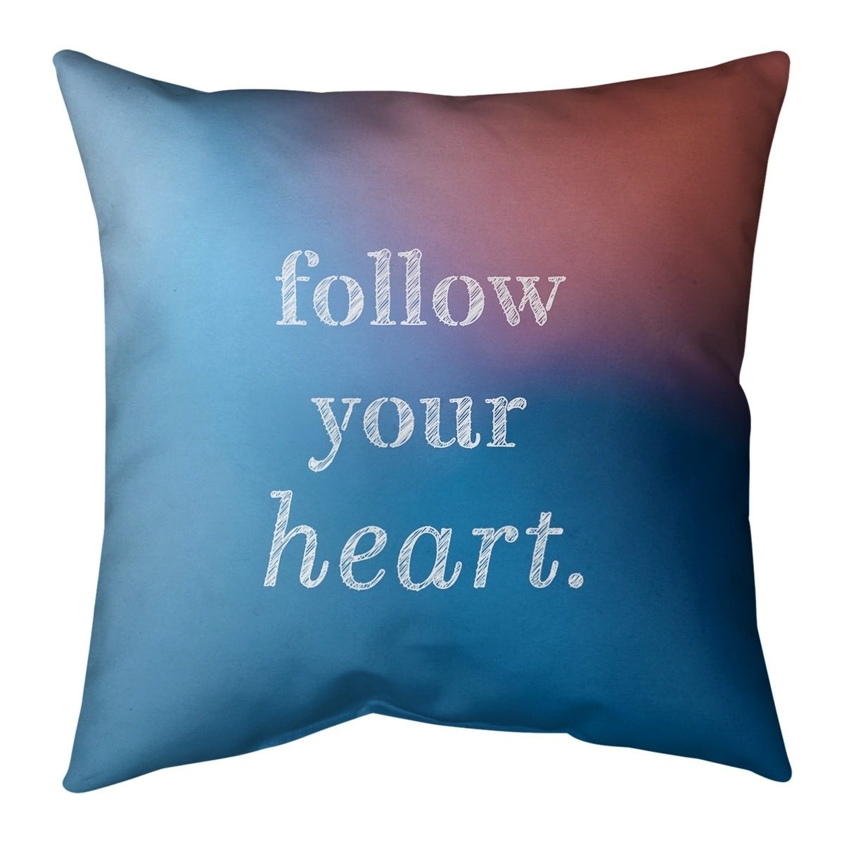 Quotes Multicolor Background Follow Your Heart Quote Pillow (w/Rmv Insert)-Spun Poly