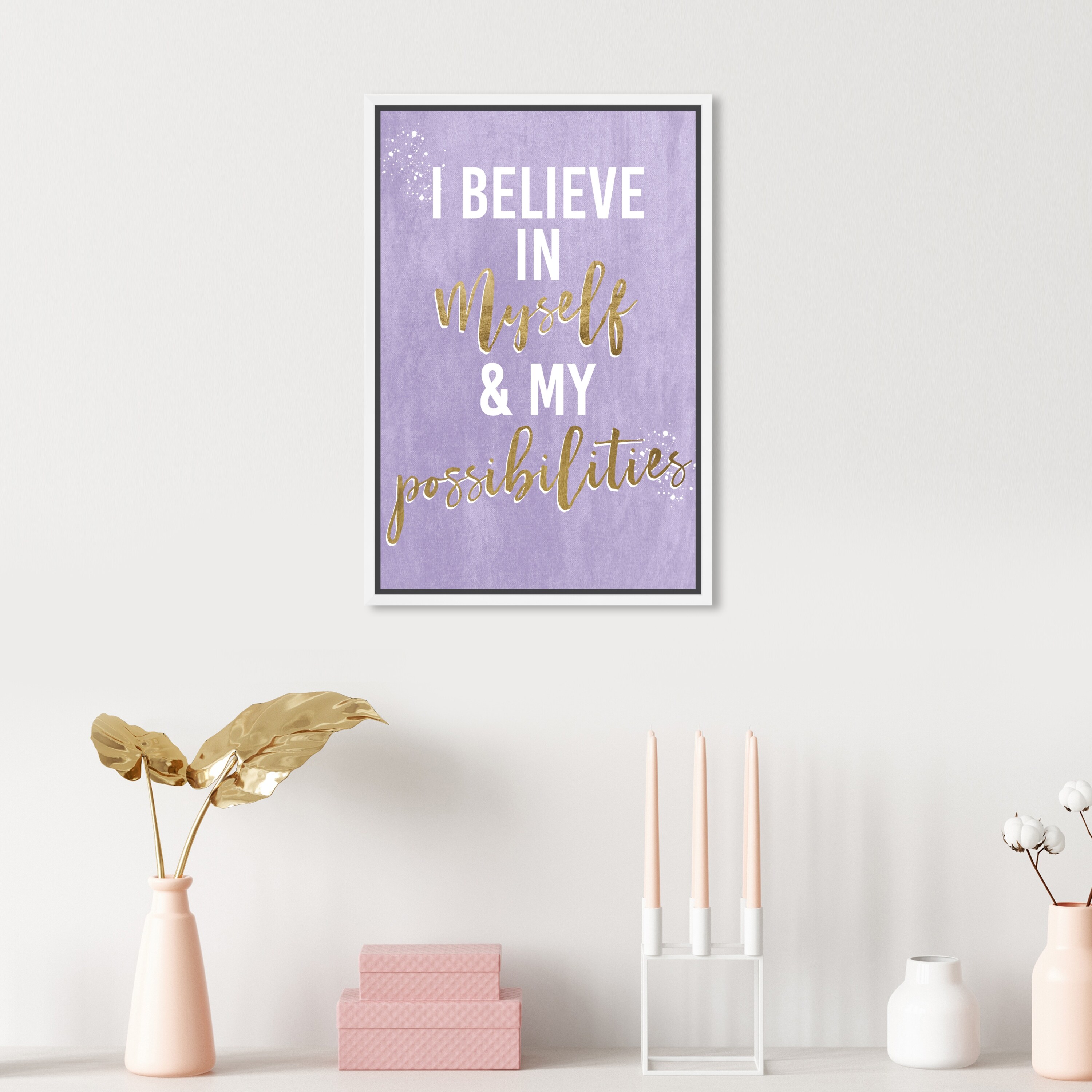 Oliver Gal 'I Believe in Myself Velvet' Typography and Quotes Wall Art Framed Canvas Print Empowered Women - Purple, Gold