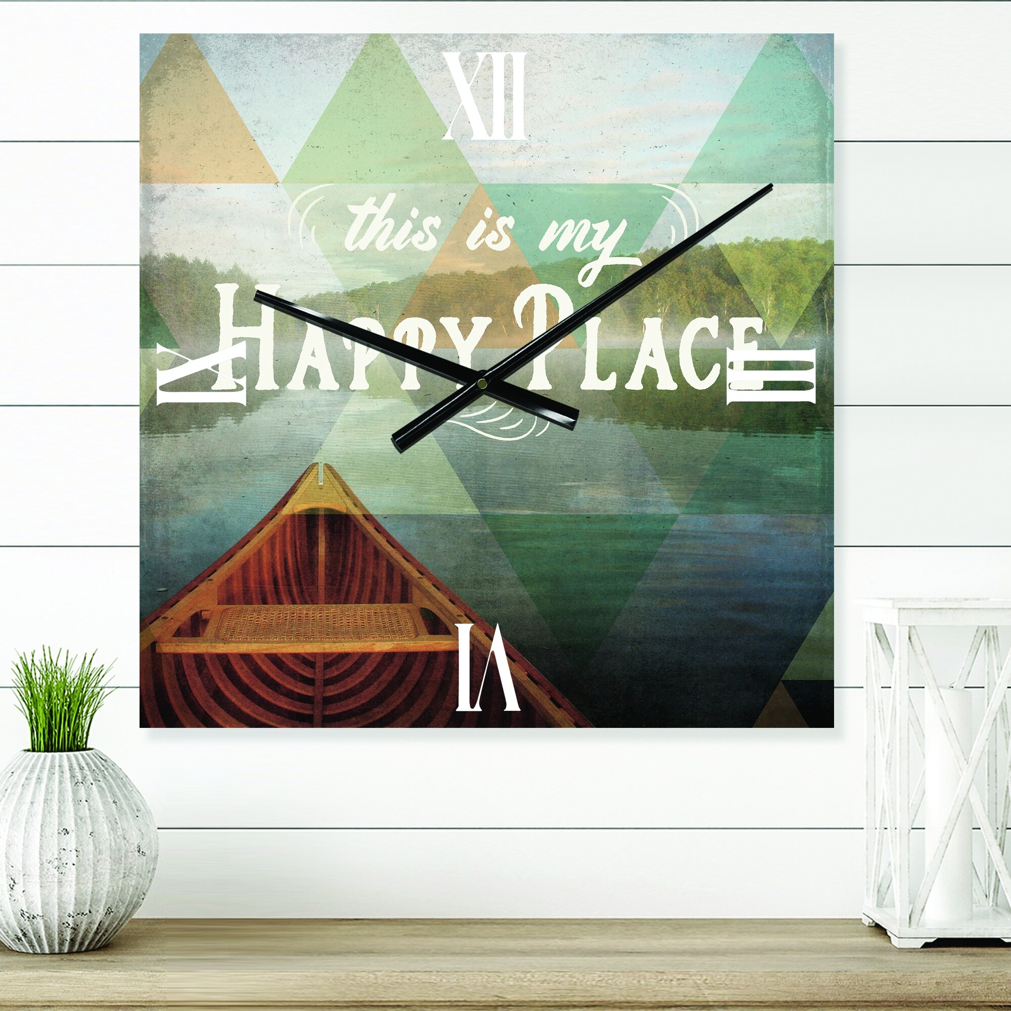 Designart 'Lake House Happy Quote' Traditional Large Wall Clock