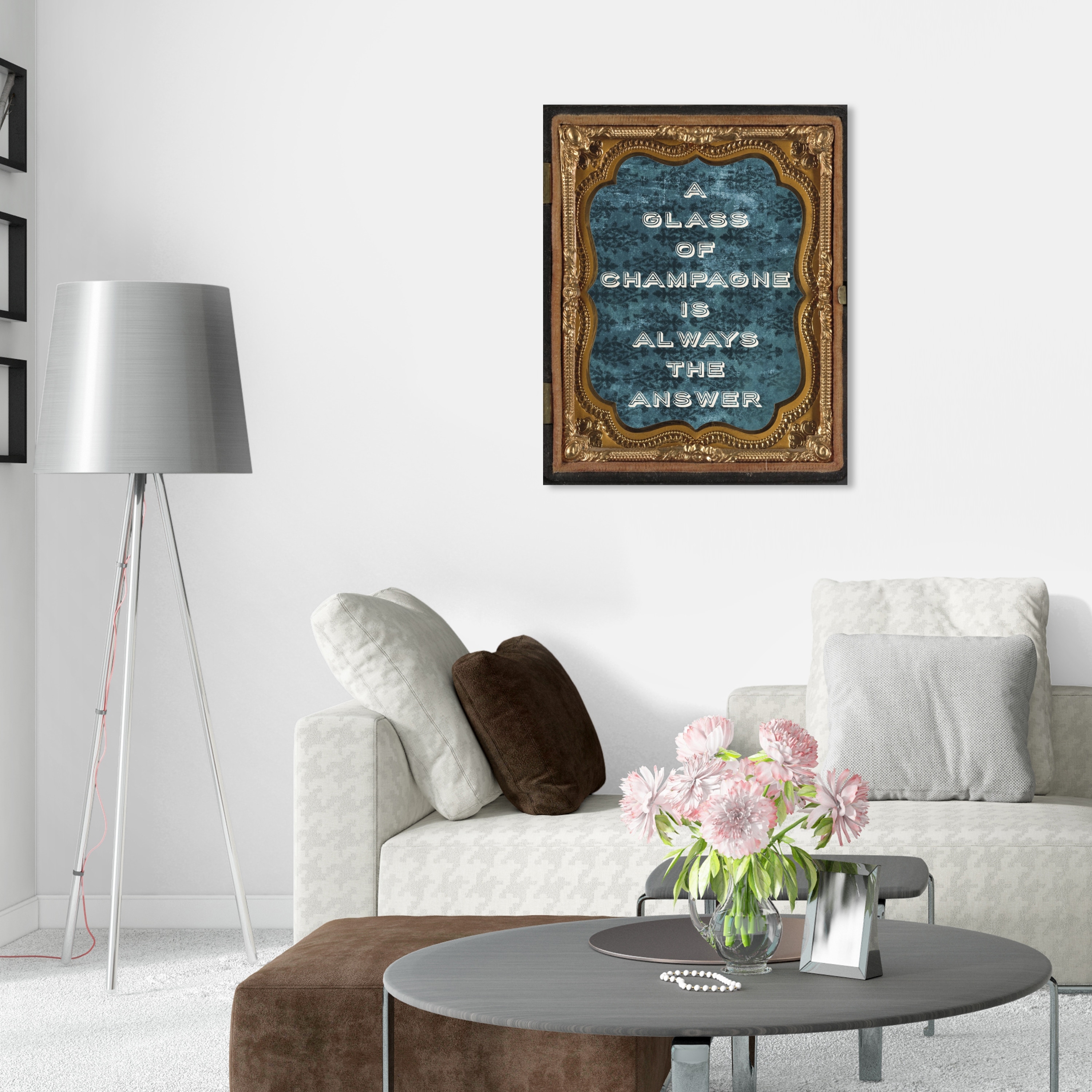 Oliver Gal 'Carson Kressley - Glass of Champagne' Typography and Quotes Wall Art Canvas Print - Green, Gold