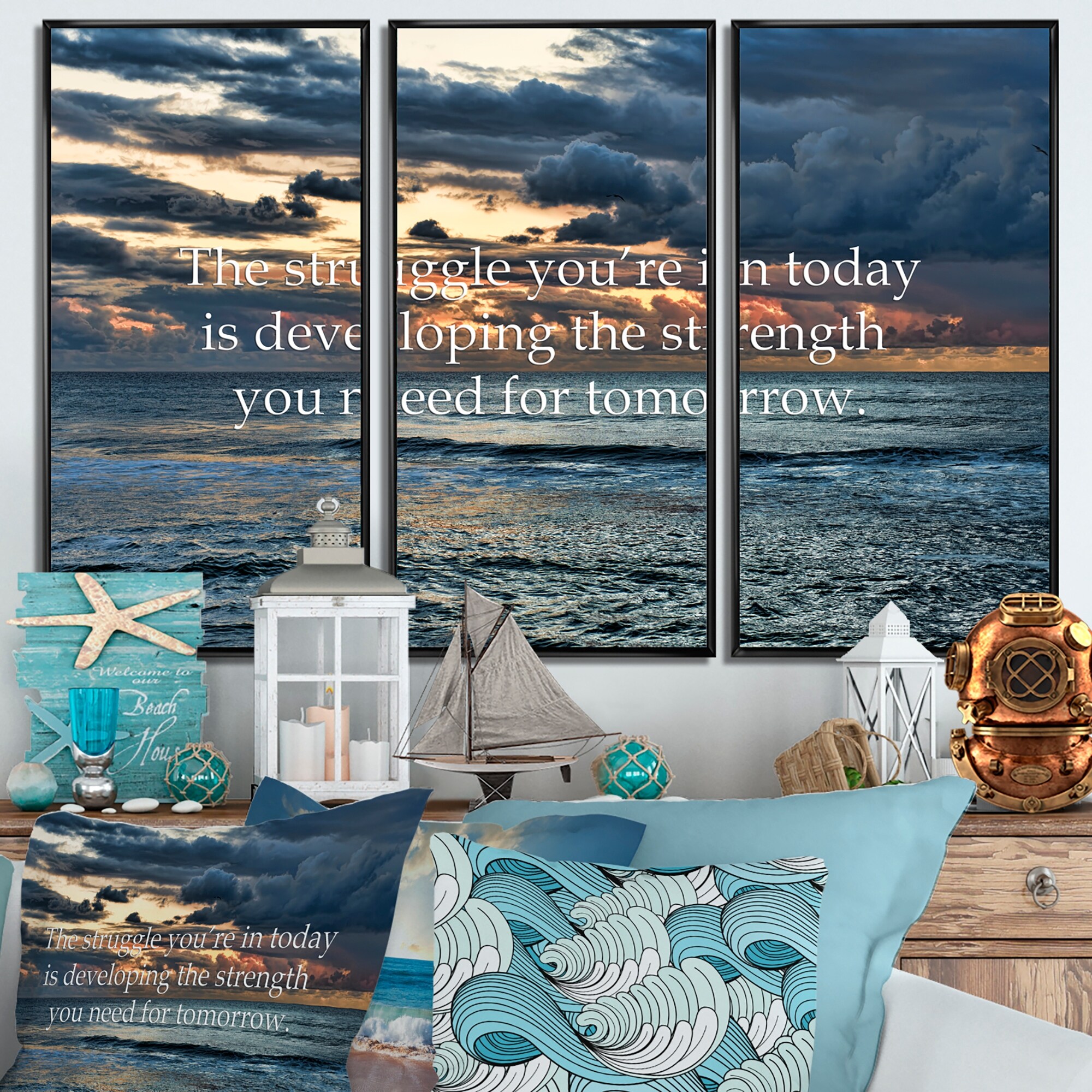 Designart "Ocean and Inspirational Quote" Nautical & Coastal Framed Canvas Wall Art Print Set of 3 - 4 Colors of Frames