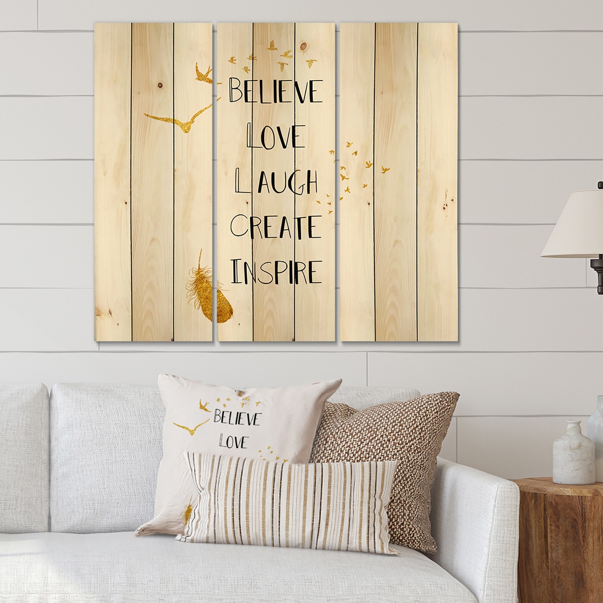 Designart 'Inspirational Quote on White and Gold' Traditional Print on Natural Pine Wood - 3 Panels