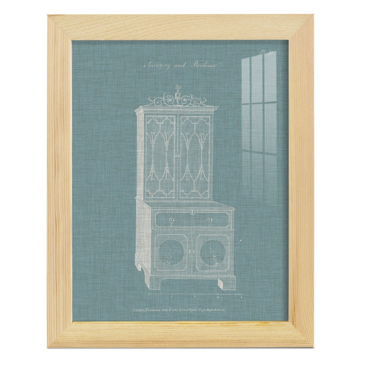 Hepplewhite Desk & Bookcase III -Framed Print w/glass-Cherry Red