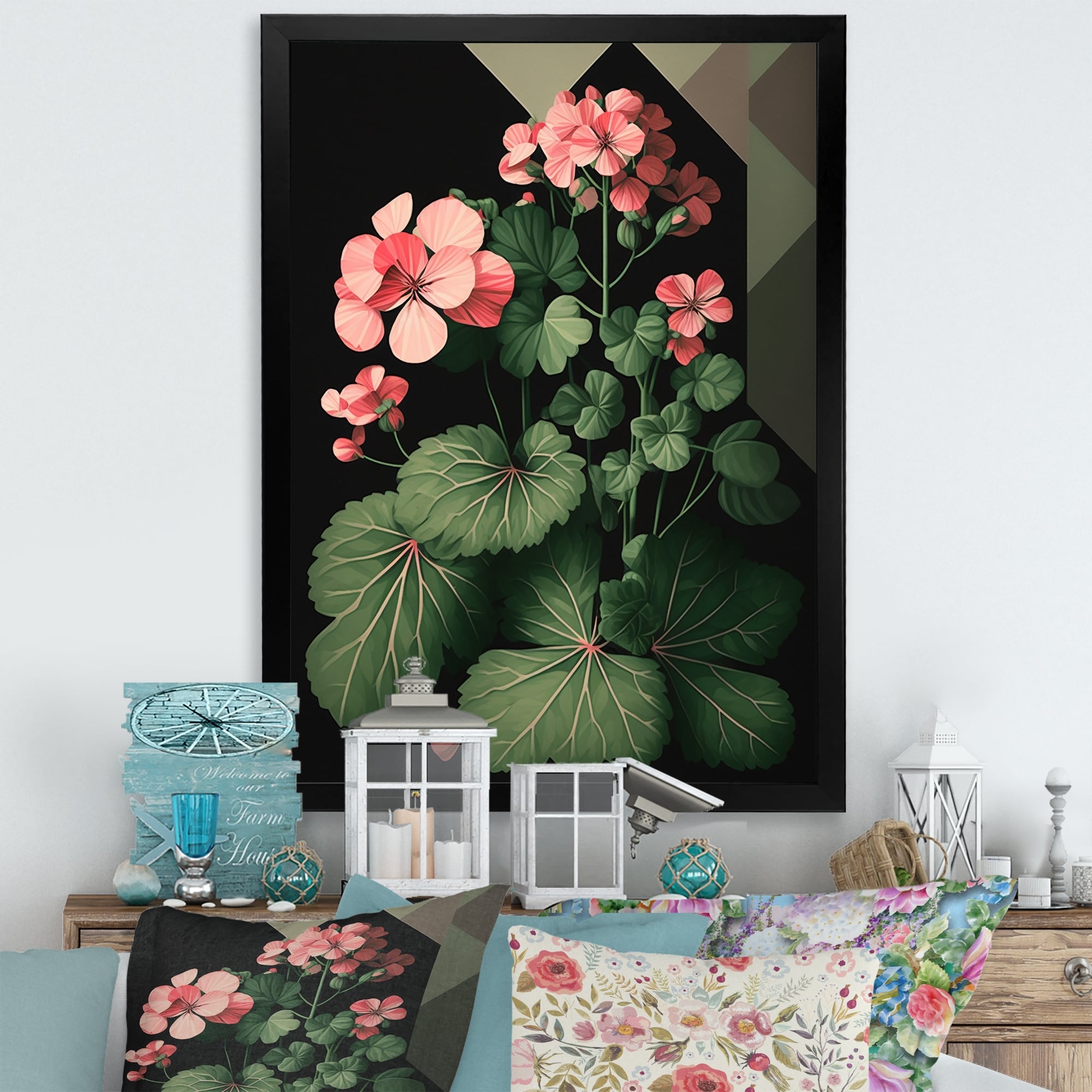 Designart "Retro Geranium in Red And Green V" Floral Framed Art Print